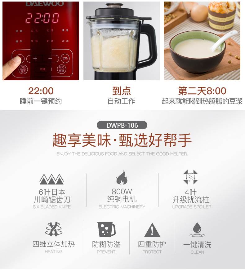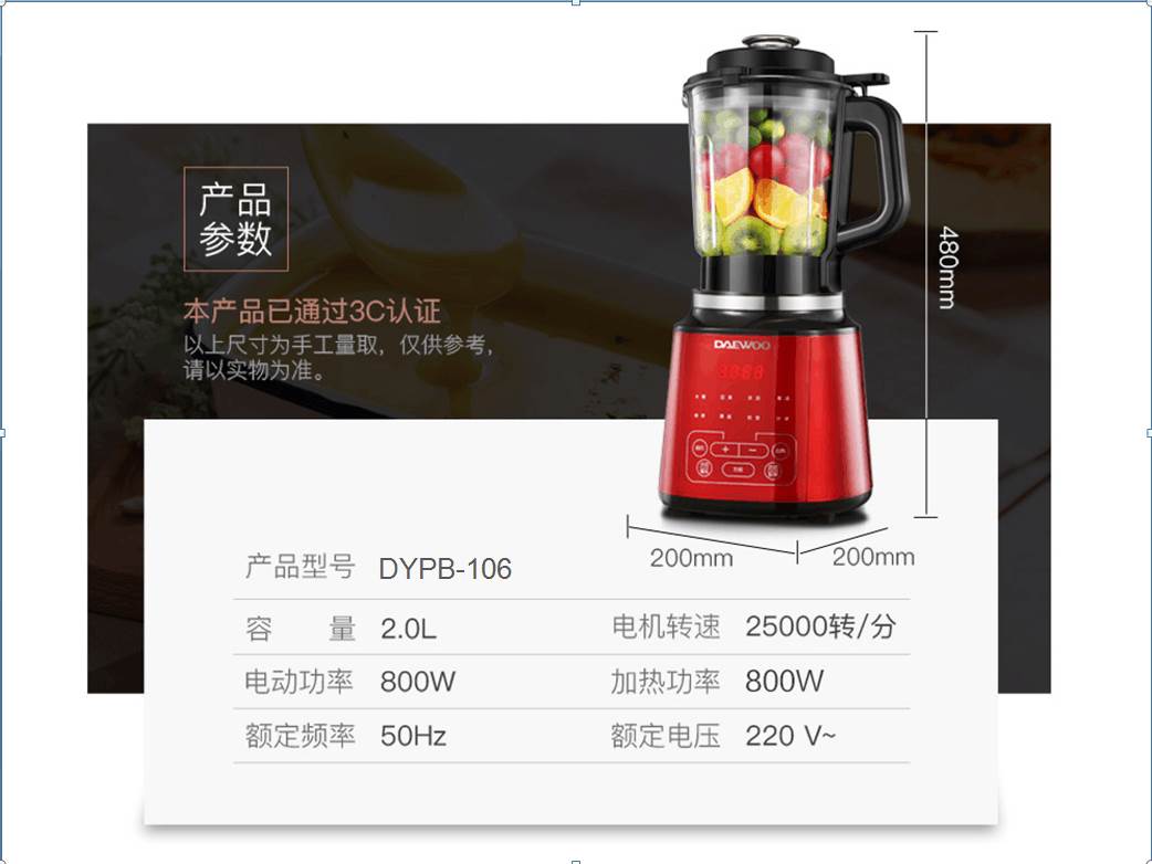 大宇(DAEWOO)智能加热破壁机 DYPB-106