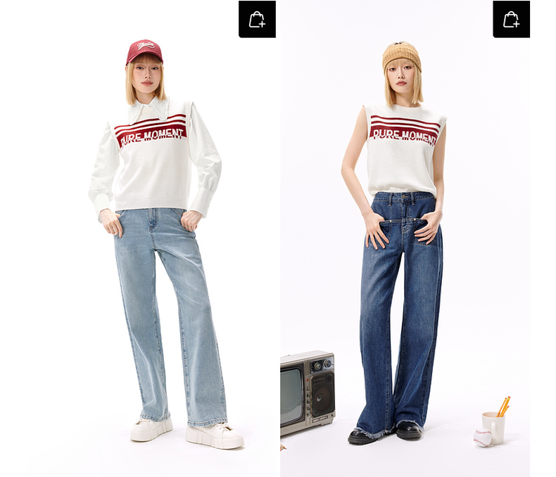 【严选】诗凡黎经典水洗直筒牛仔裤2025秋新款丹宁风高腰显瘦通勤休闲长裤7G7150981