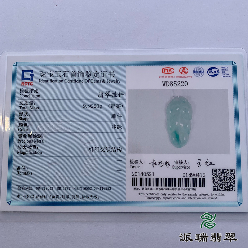 派瑞翡翠 翡翠挂件 糯冰 浅绿