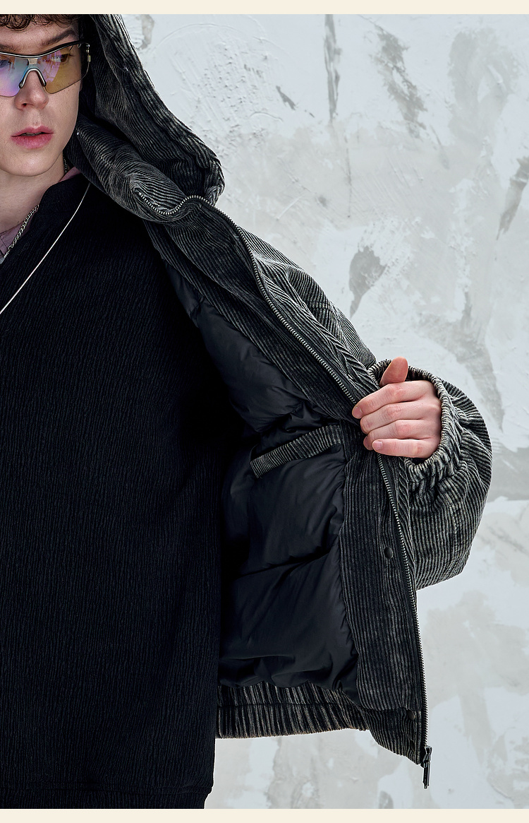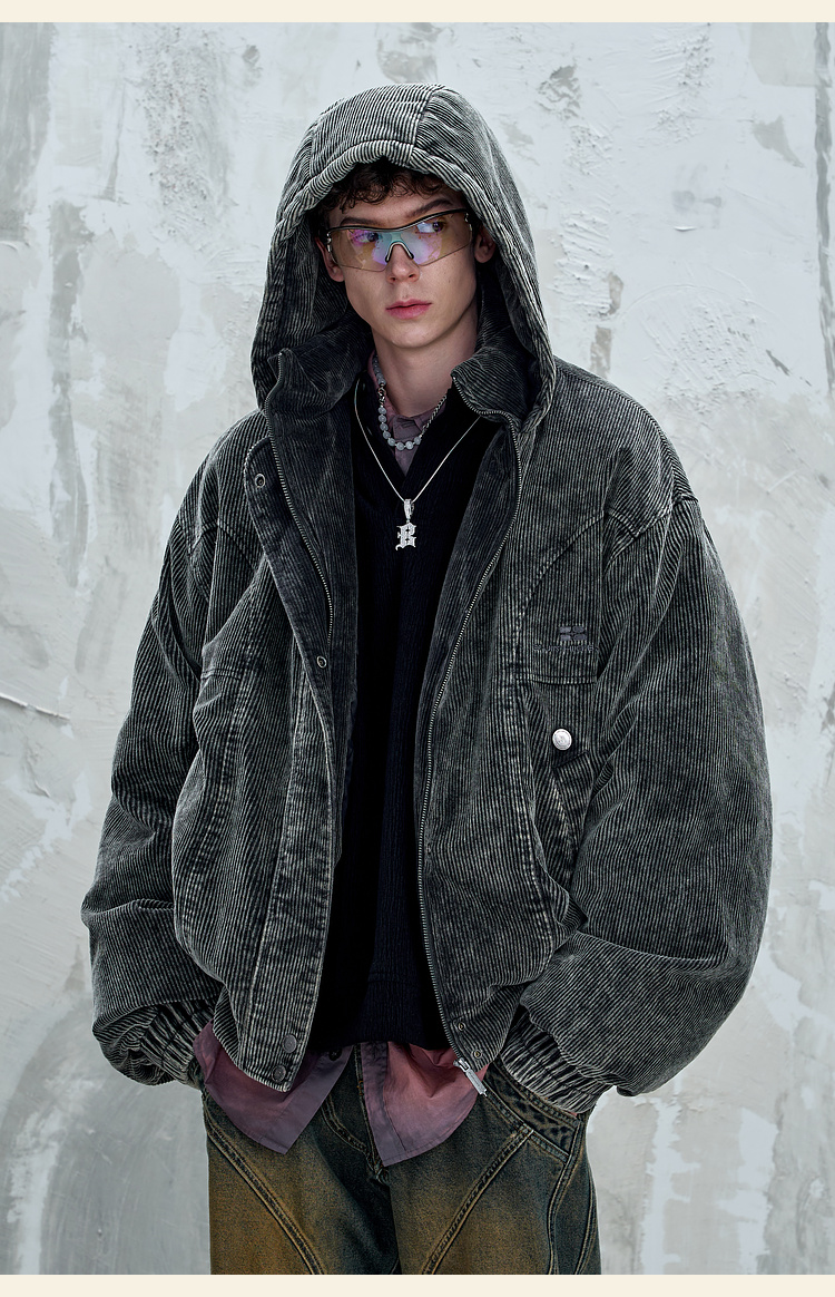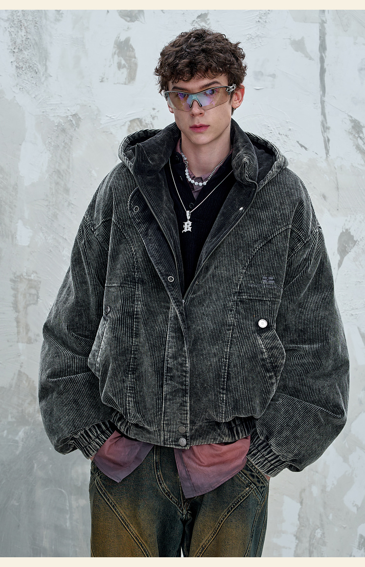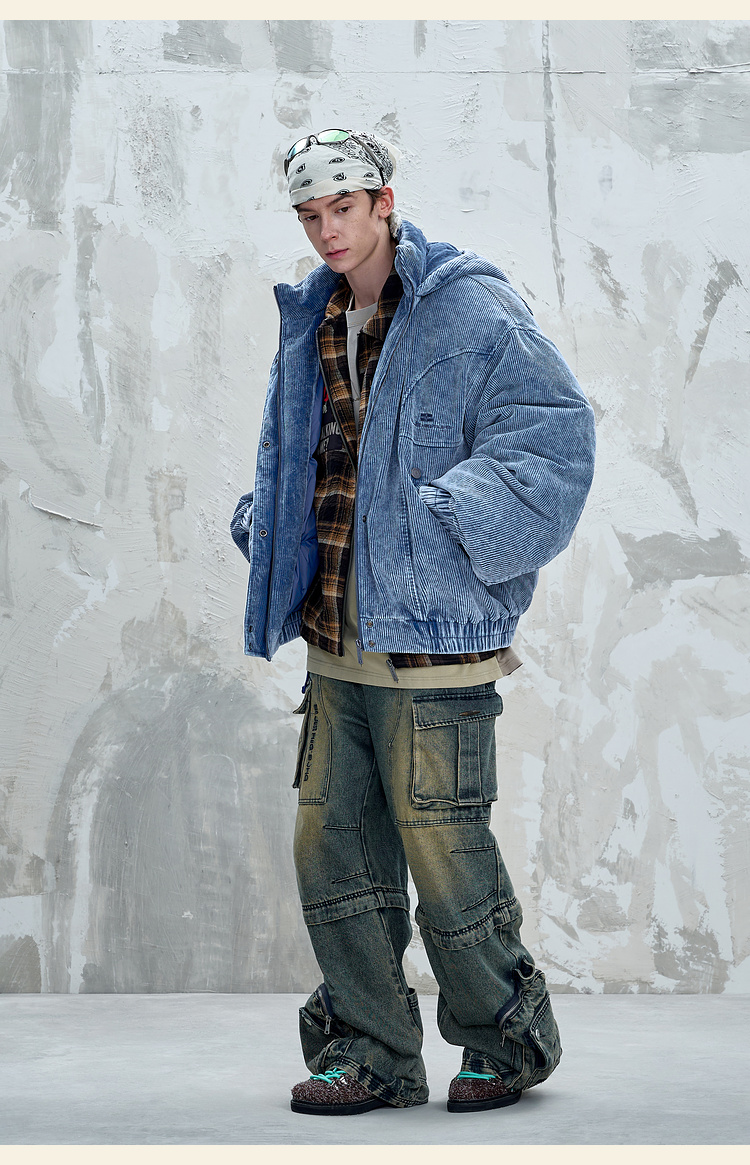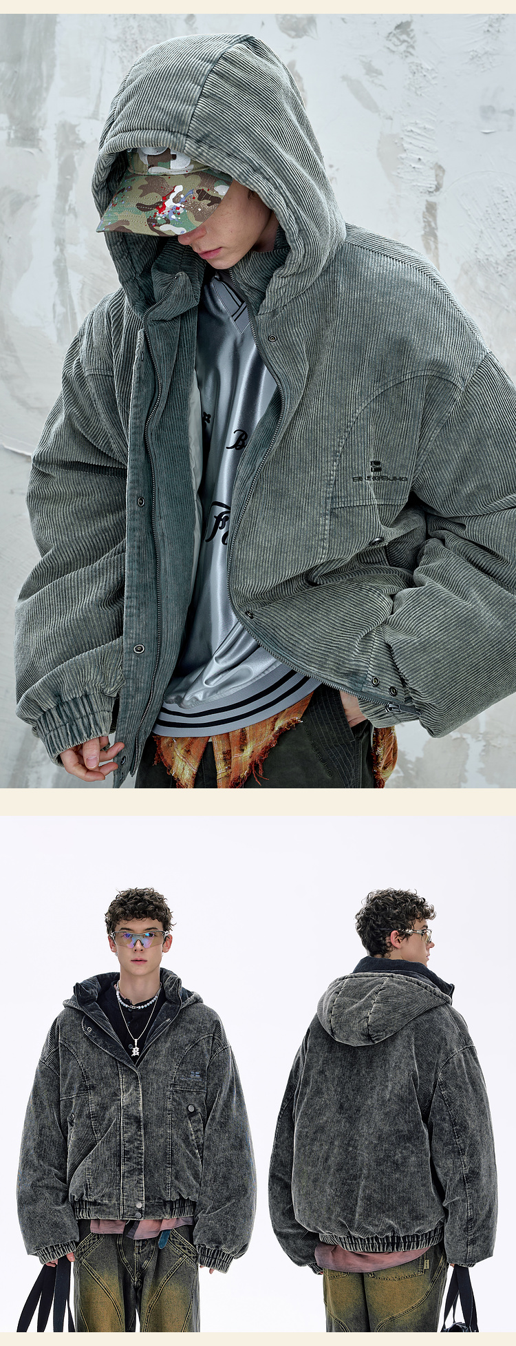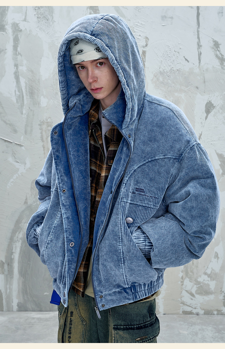 BJHG不计后果灯芯绒羽绒服男款冬季宽松连帽复古巴恩风羽绒服外套