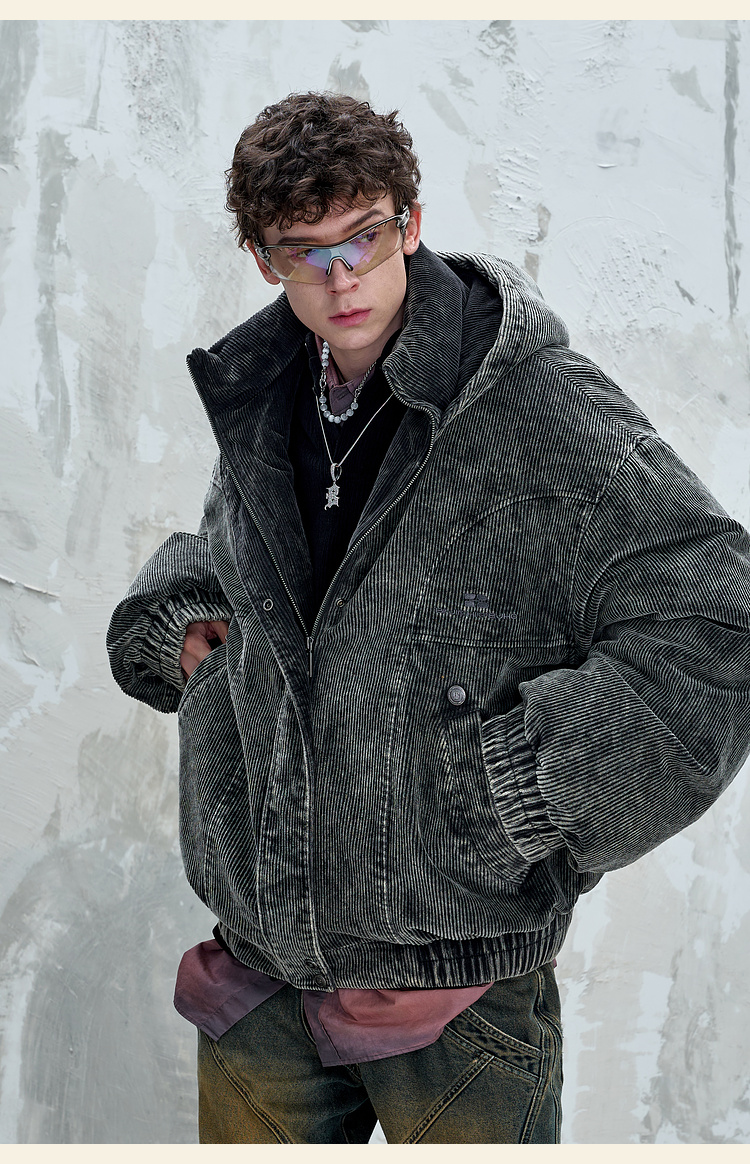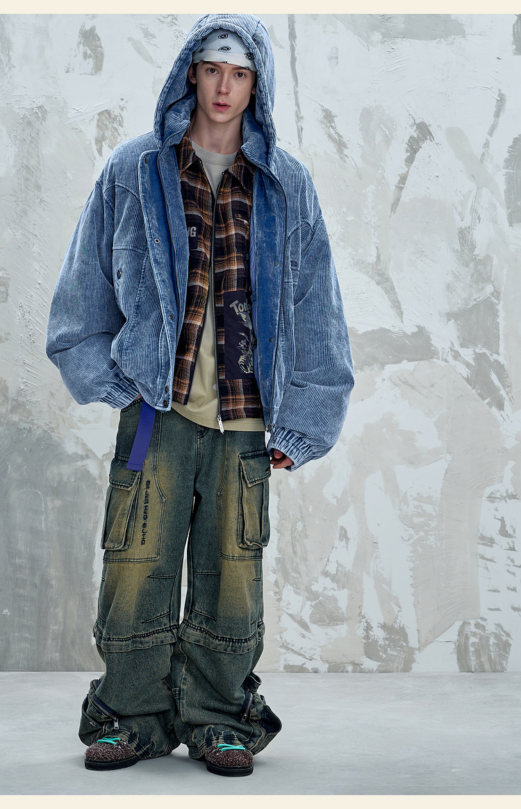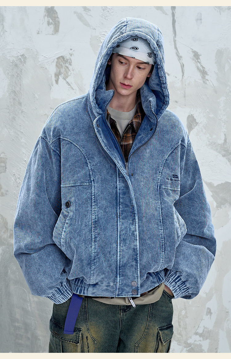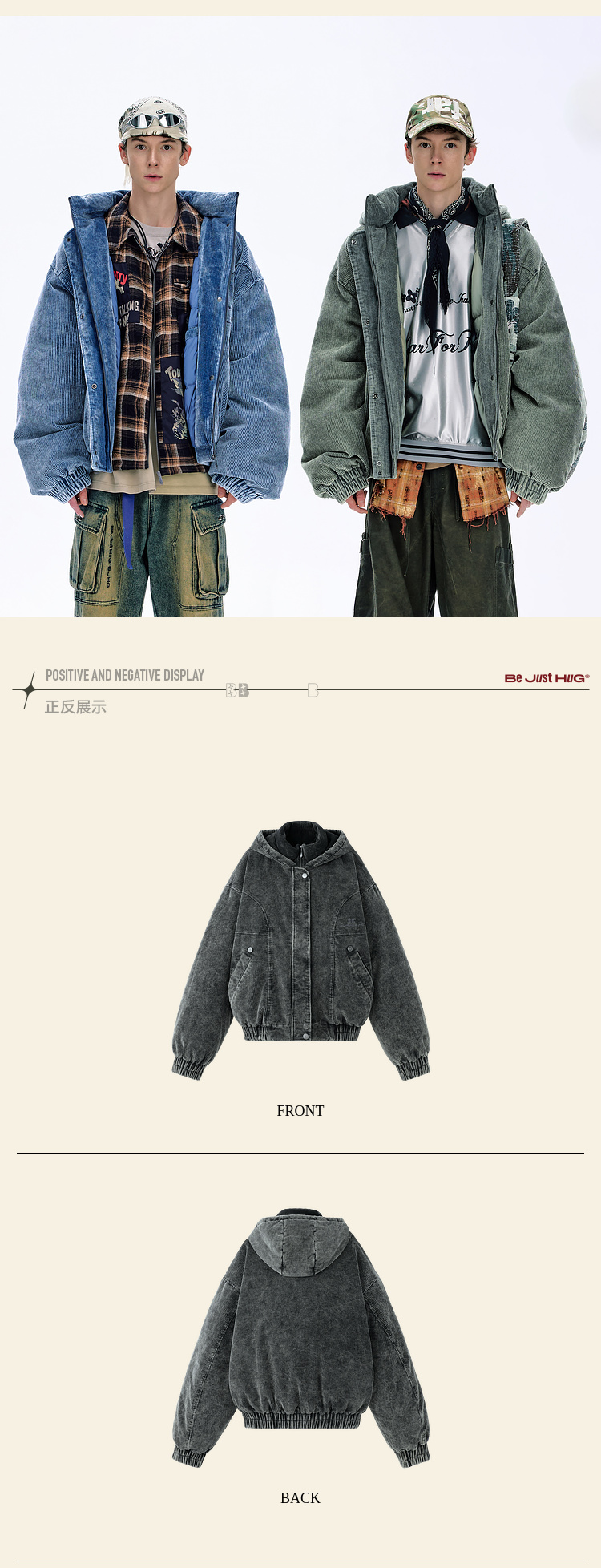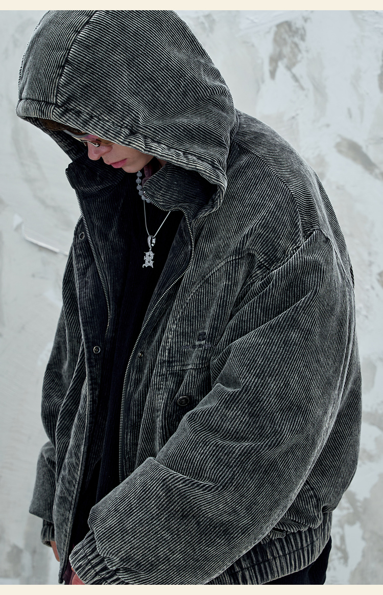 BJHG不计后果灯芯绒羽绒服男款冬季宽松连帽复古巴恩风羽绒服外套