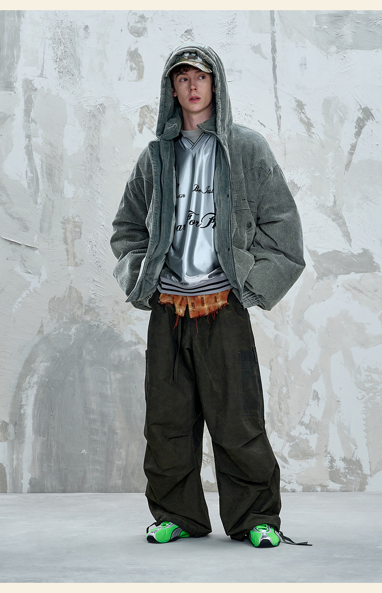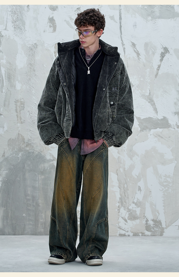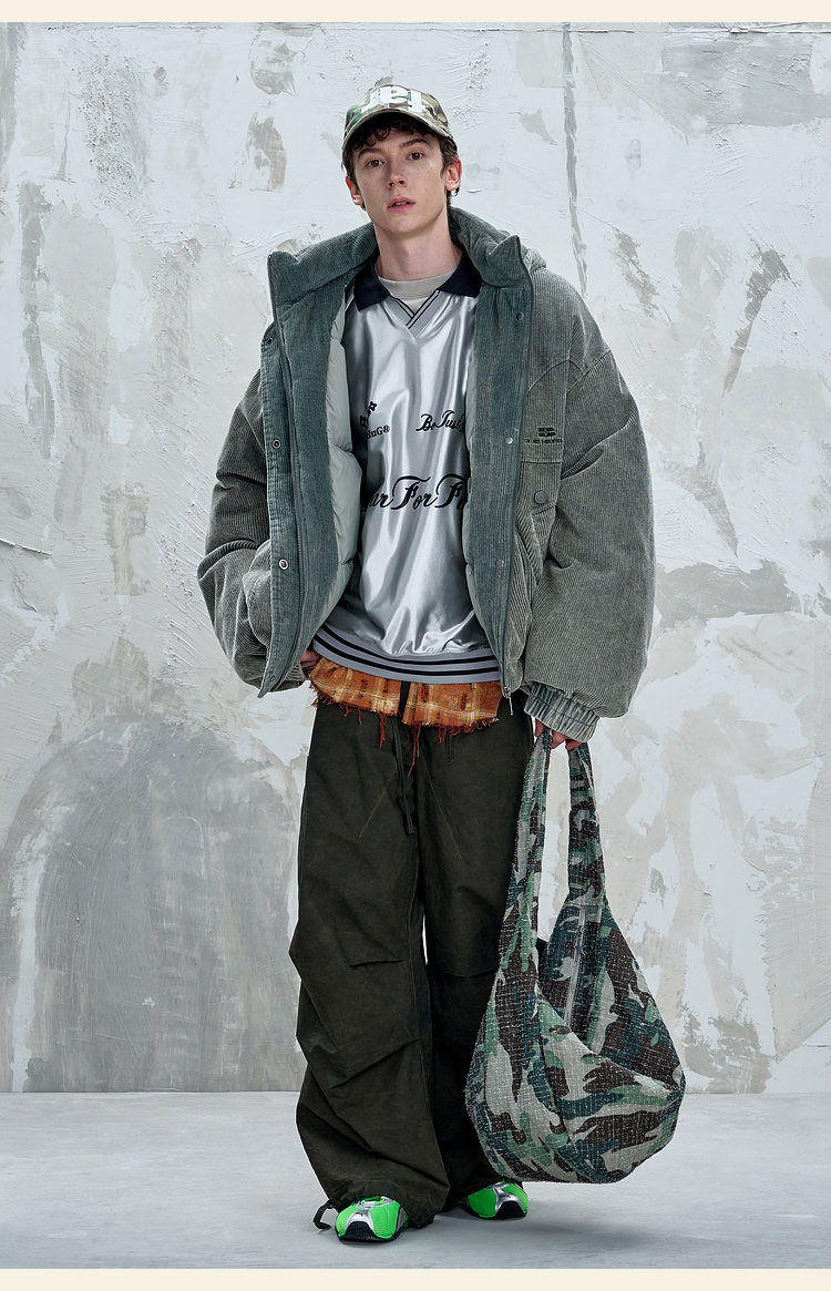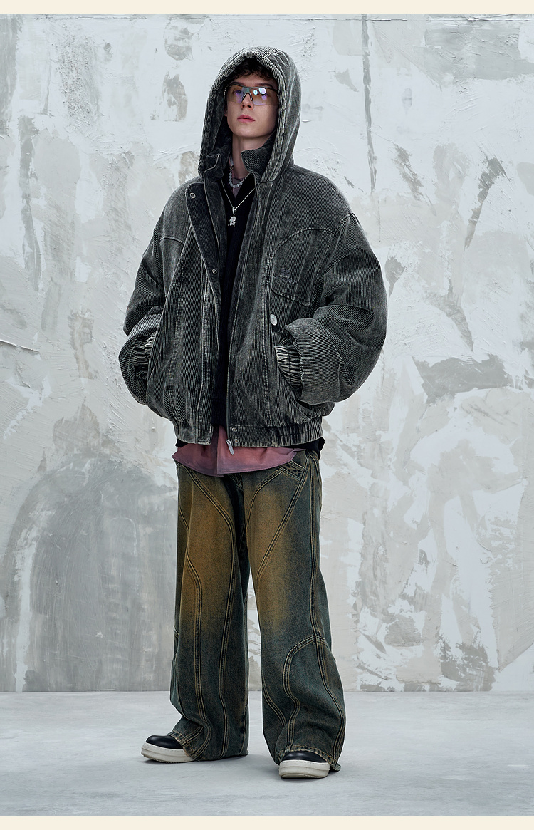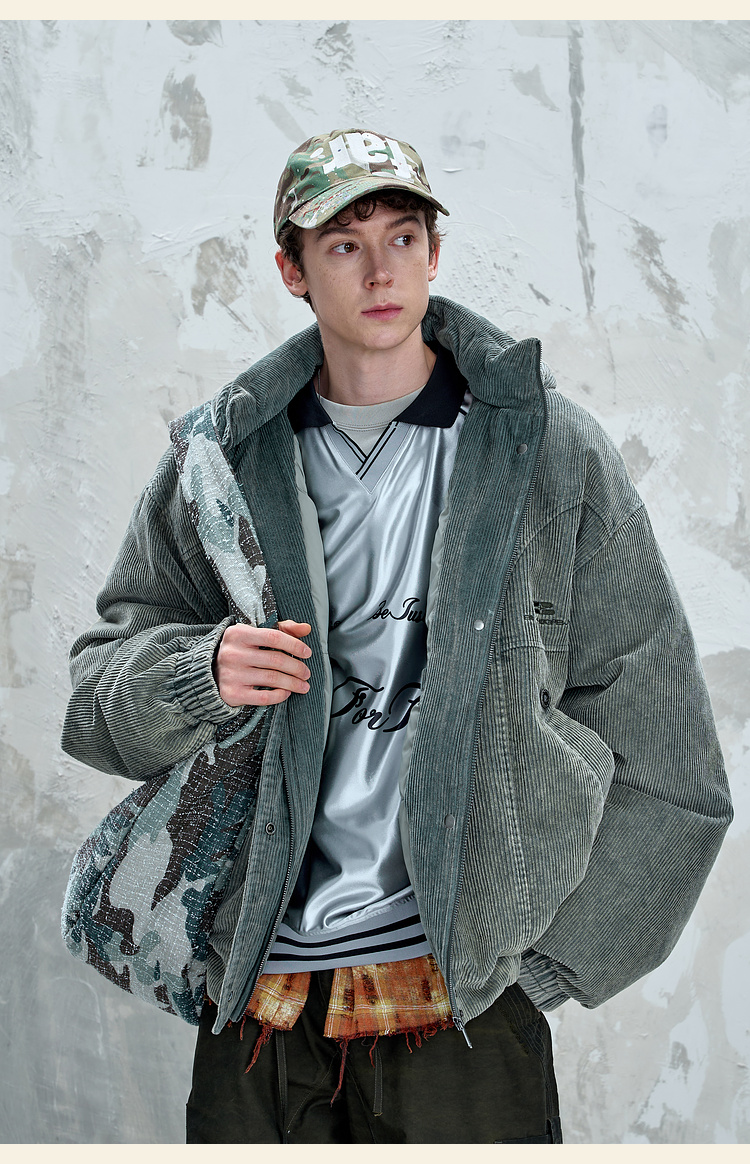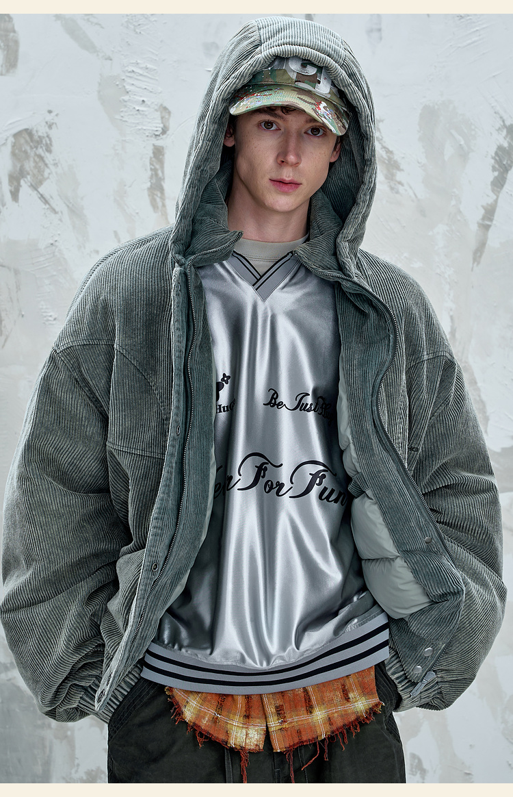 BJHG不计后果灯芯绒羽绒服男款冬季宽松连帽复古巴恩风羽绒服外套
