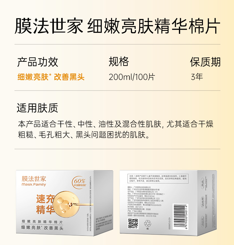 【嫩肤细毛孔】膜法世家半乳糖酵母细嫩亮肤精华棉片100片装