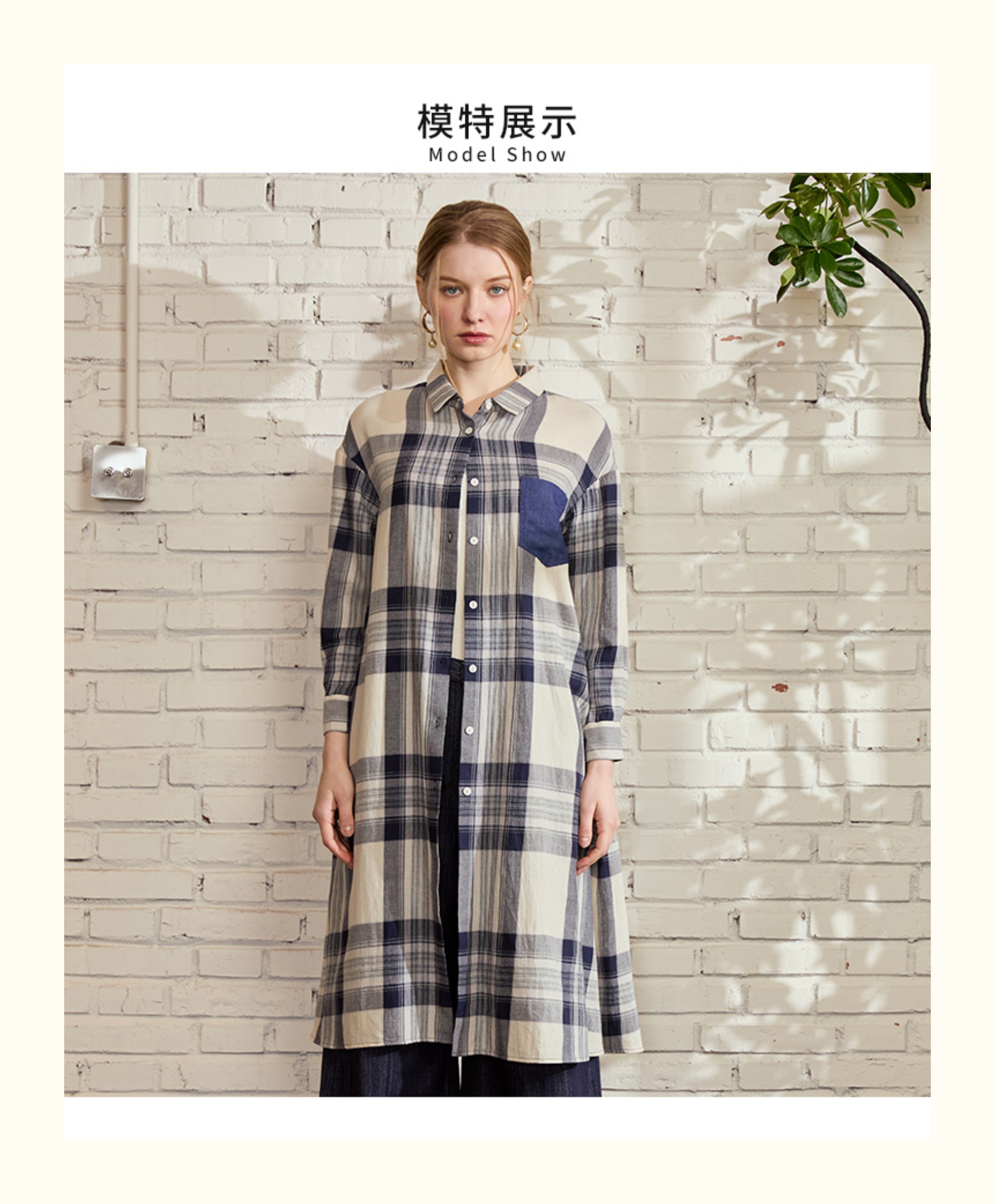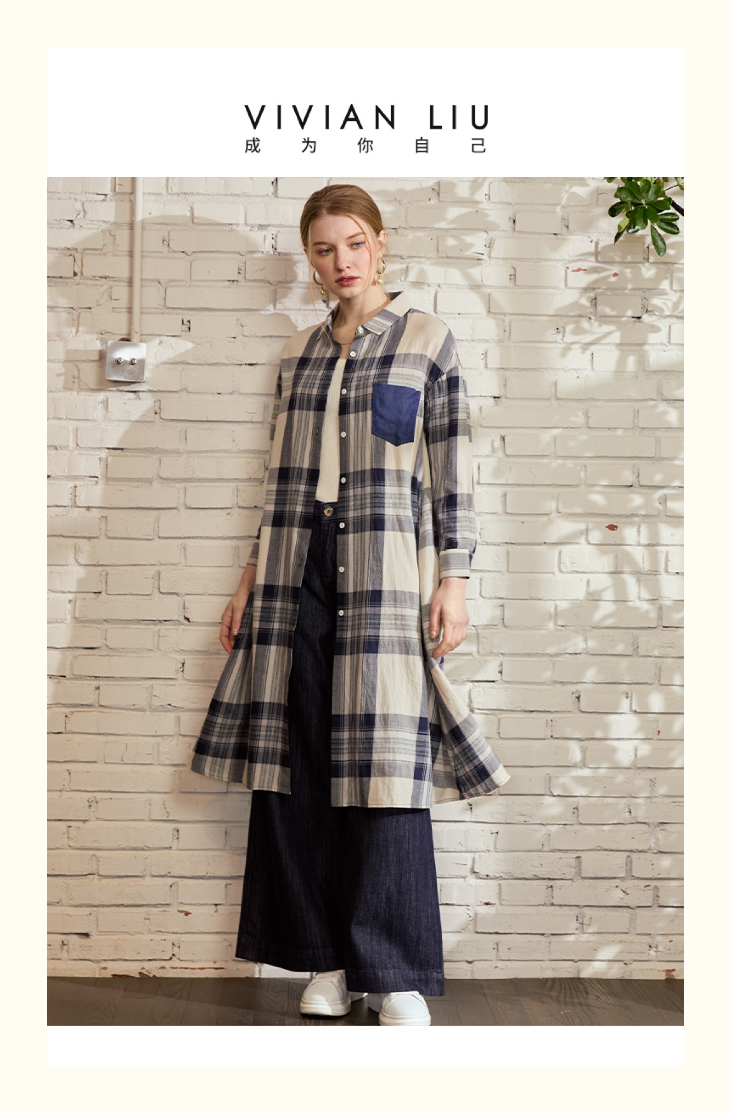 VIVIAN LIU D2443002初秋女装新款时尚翻领宽松长款长袖上衣
