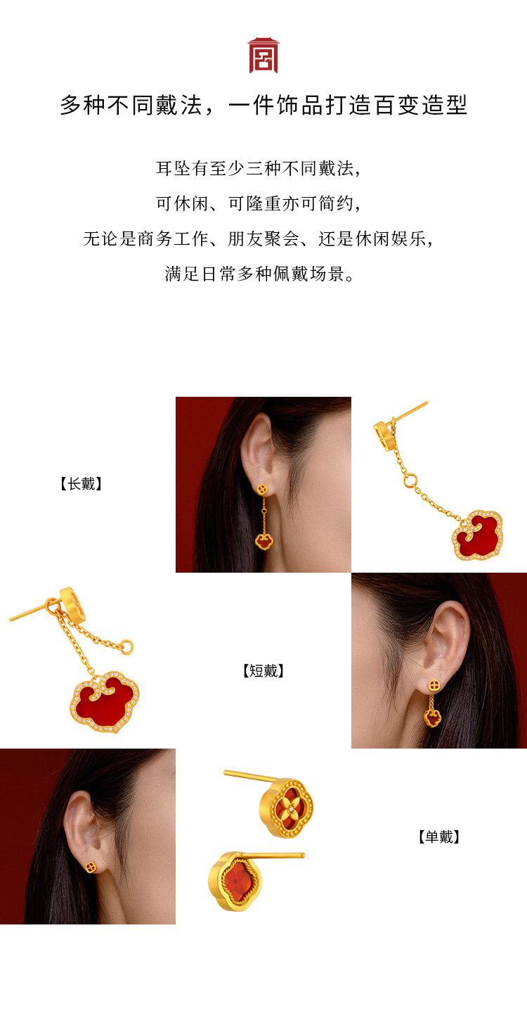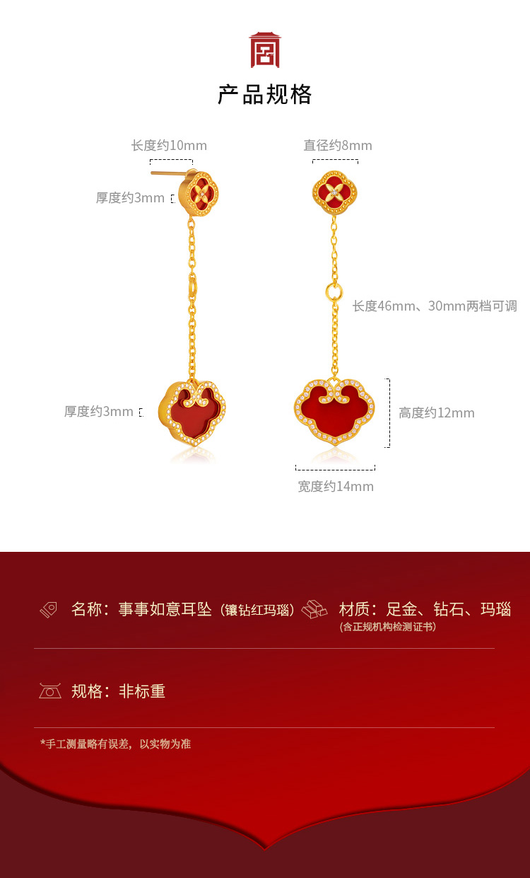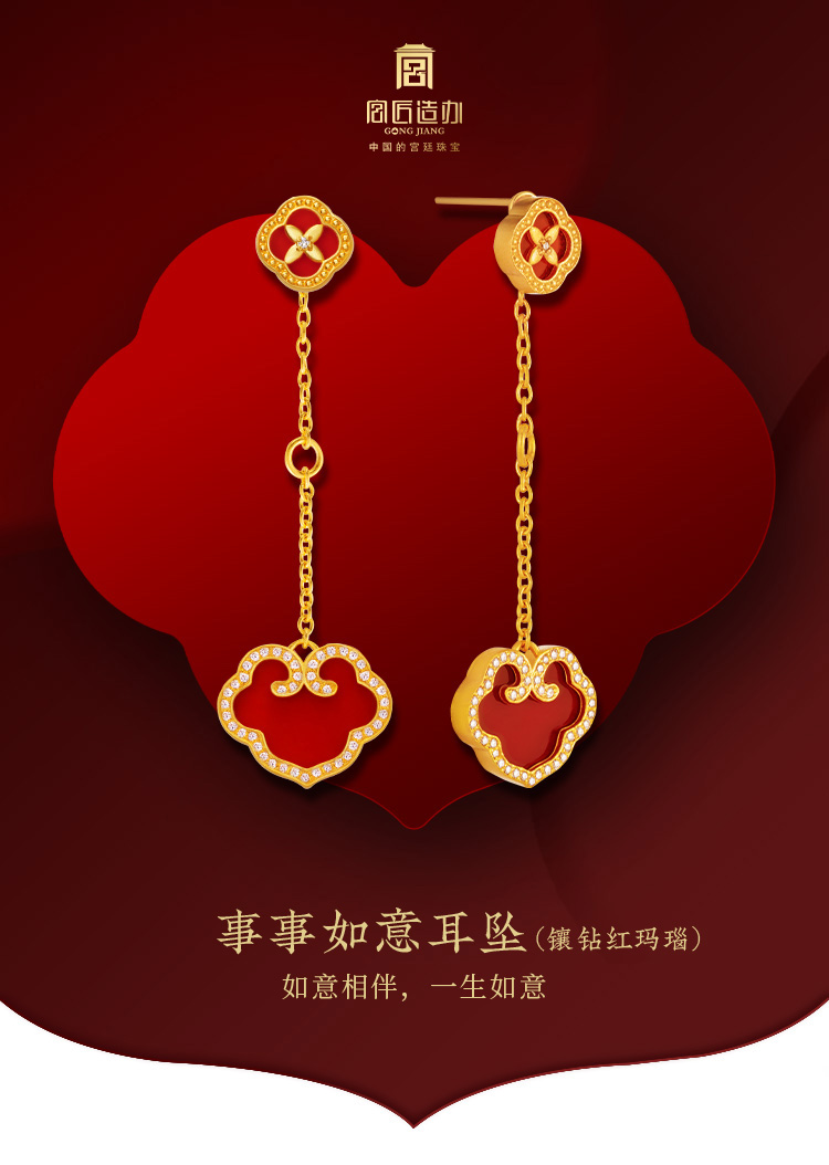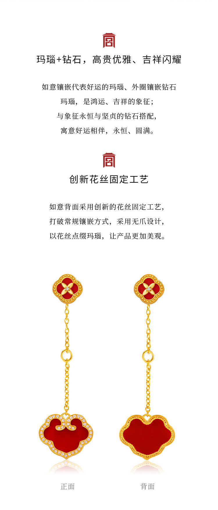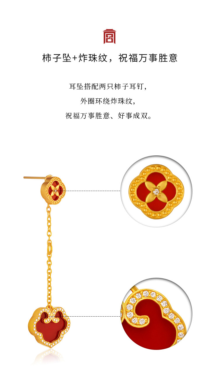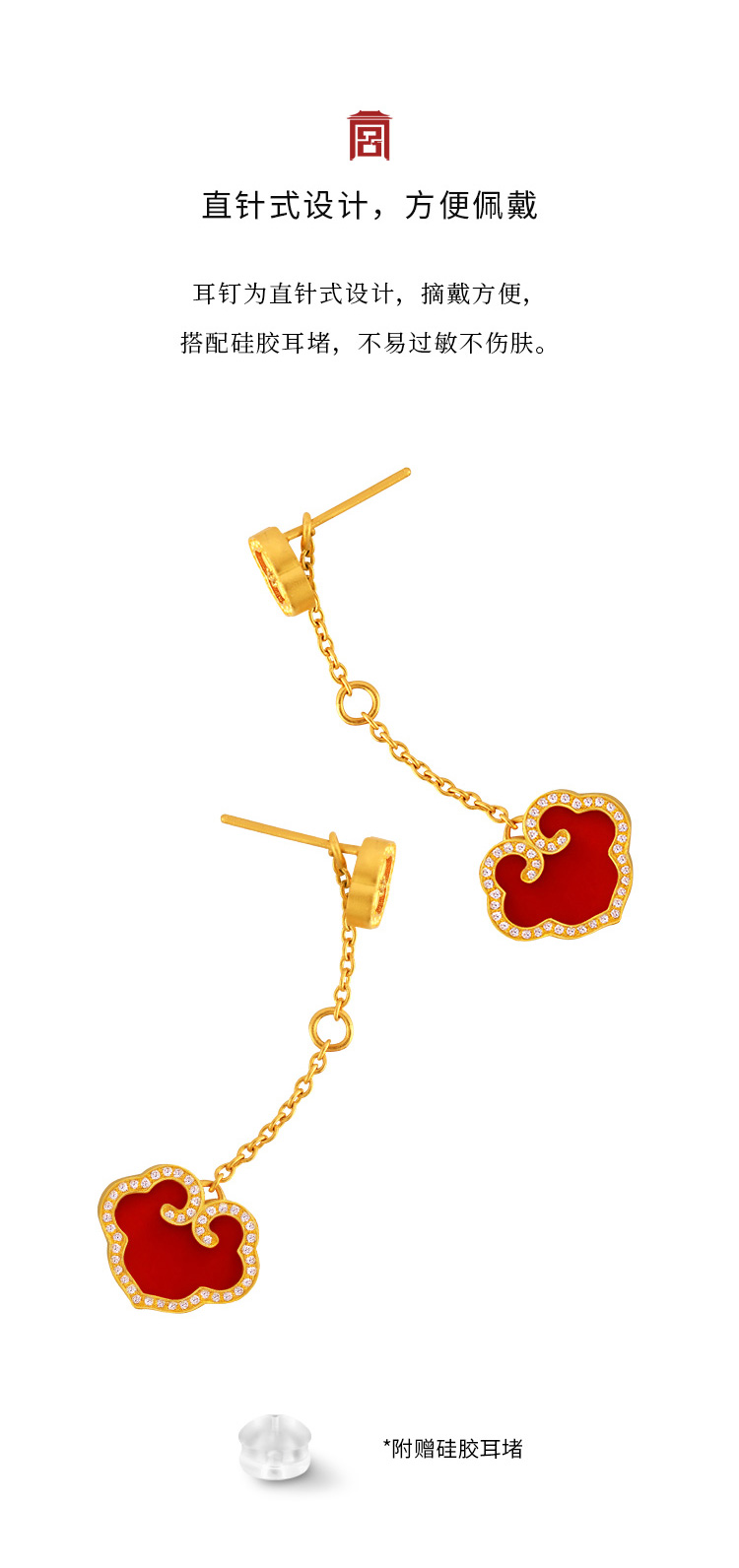 宫匠造办 事事如意耳坠 黄金镶钻红玛瑙