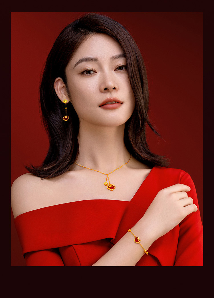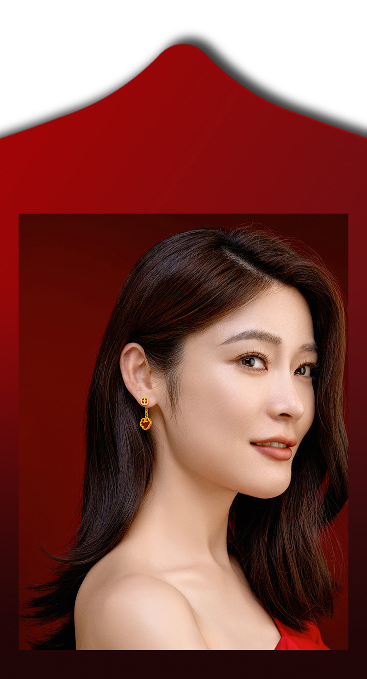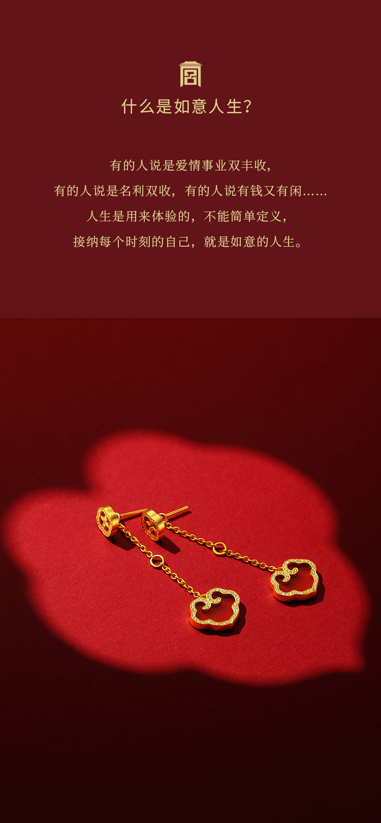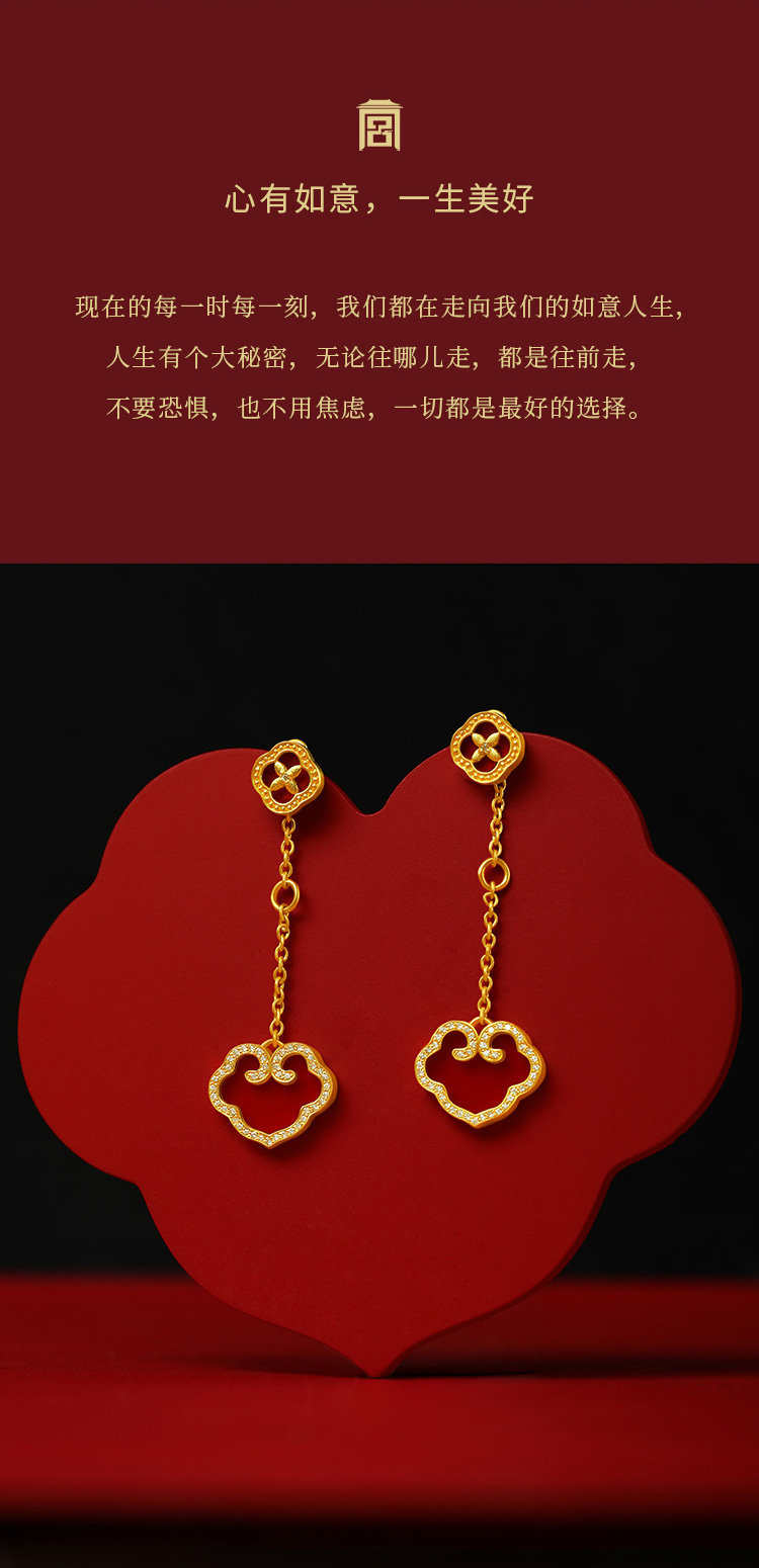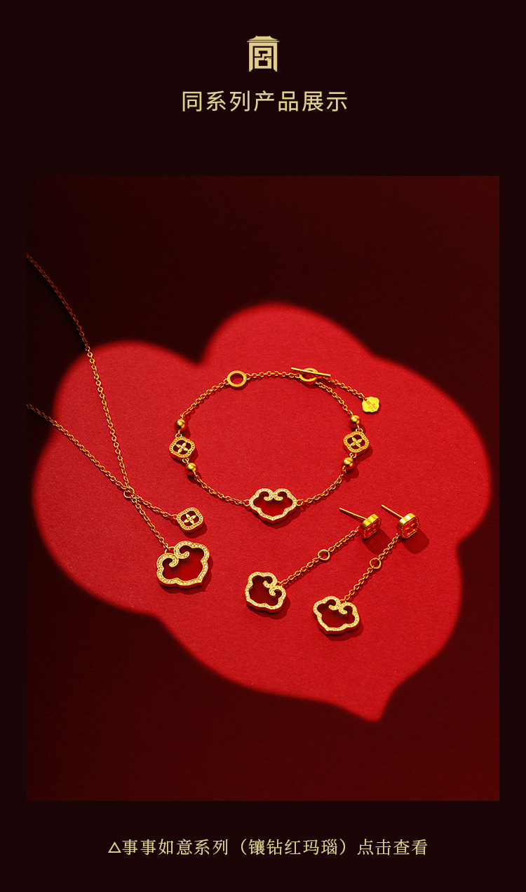 宫匠造办 事事如意耳坠 黄金镶钻红玛瑙