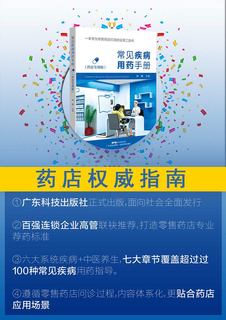 本手册着眼于如何问病荐药,让一线药店人全面系统地了解疾病的诊断标准、处理原则,以便为顾客提供全面的健康解决方案。手册涵盖内科、妇科、儿科、外科、五官科、皮肤科、中医养生等7大版块,超100种药店常见疾病。