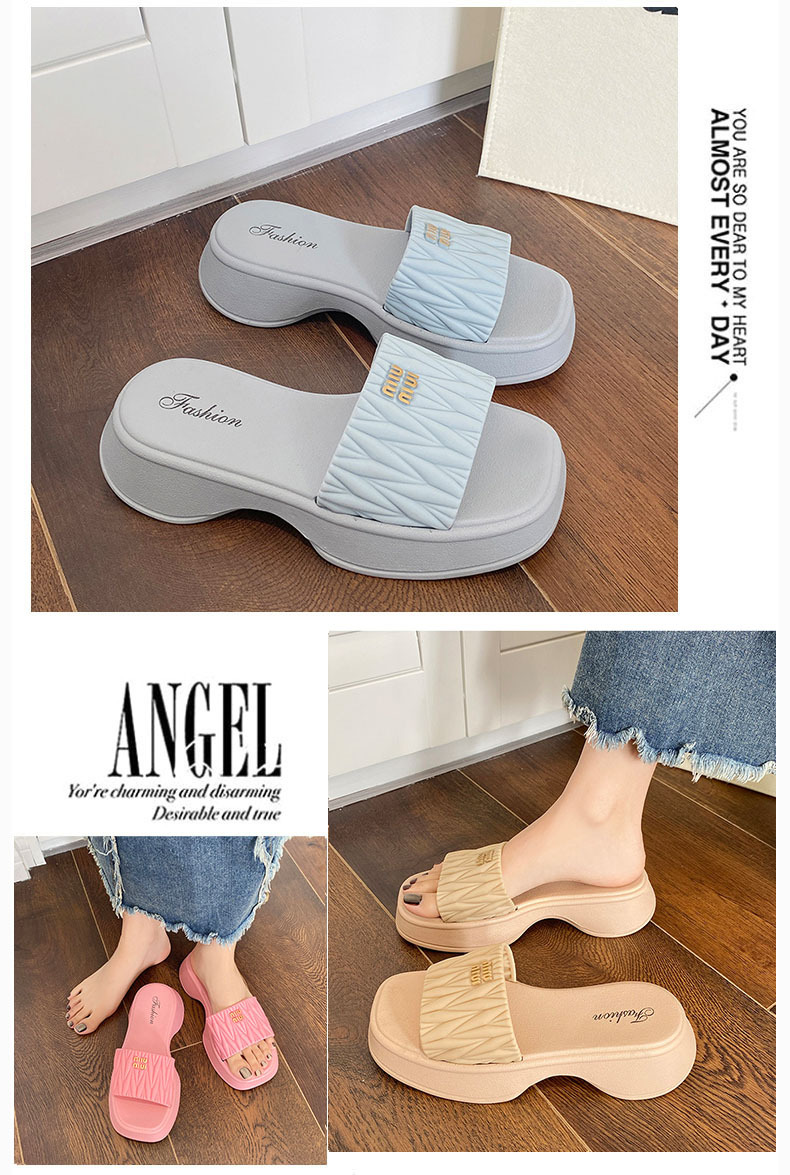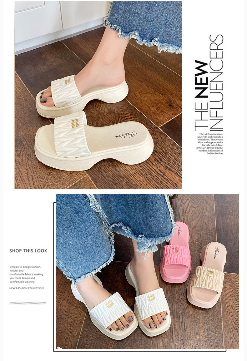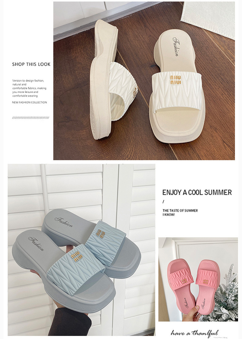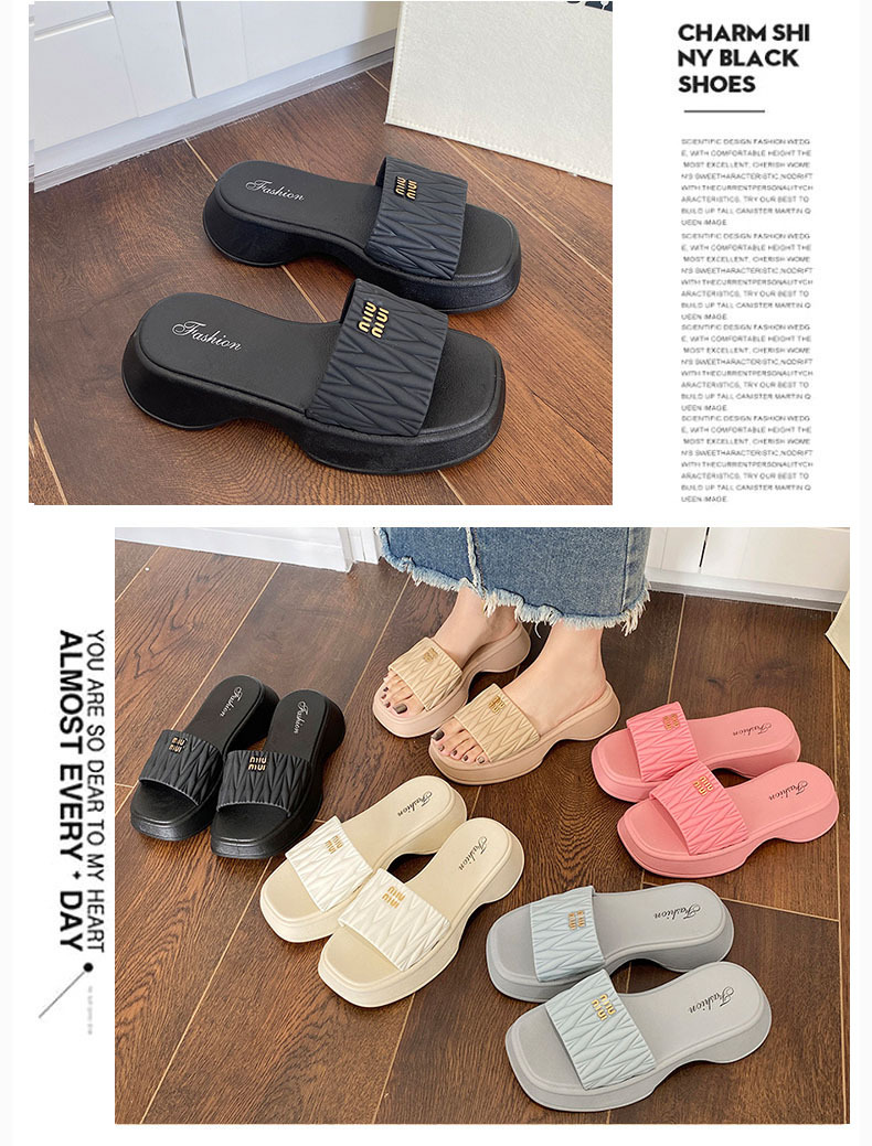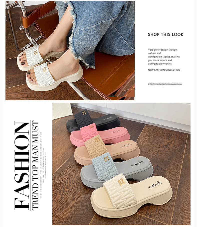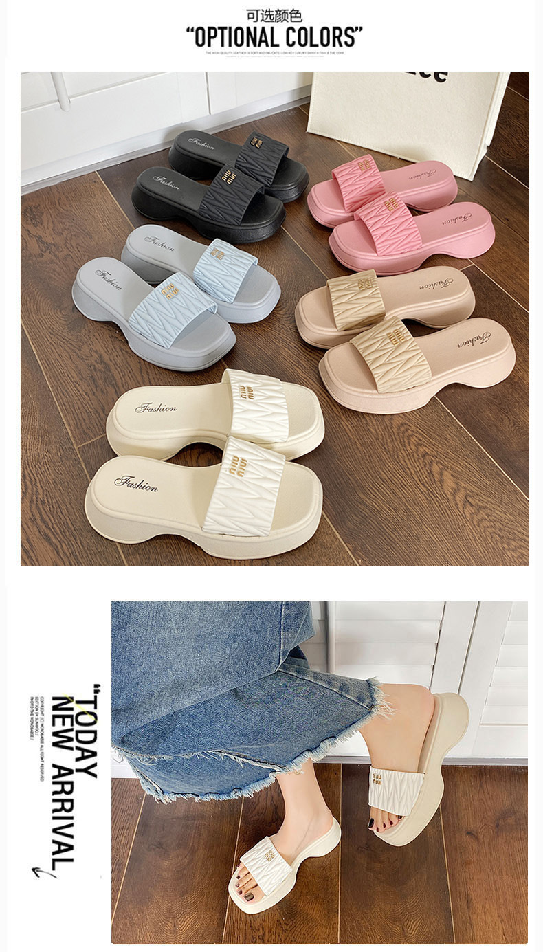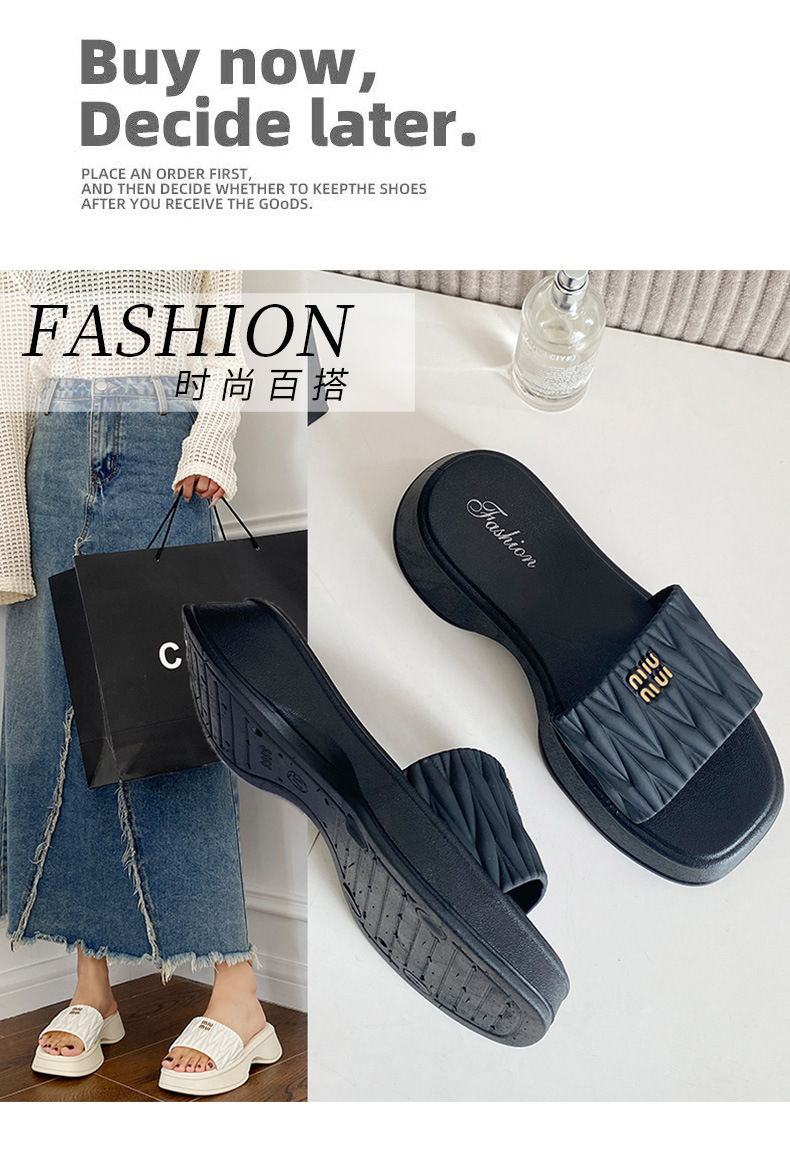 【韩版网红 厚底拖鞋女】夏季休闲外穿 新款纯色海边沙滩一字拖