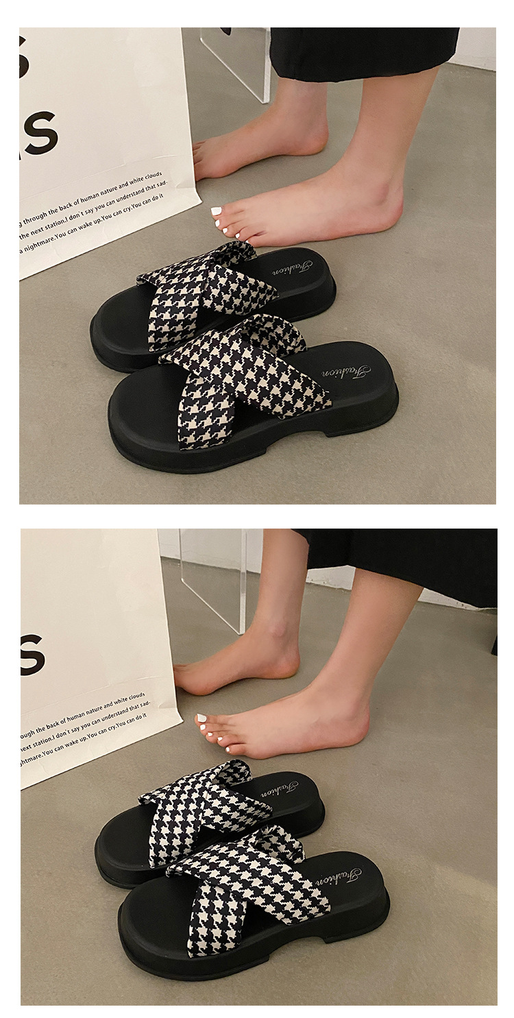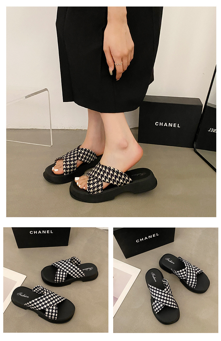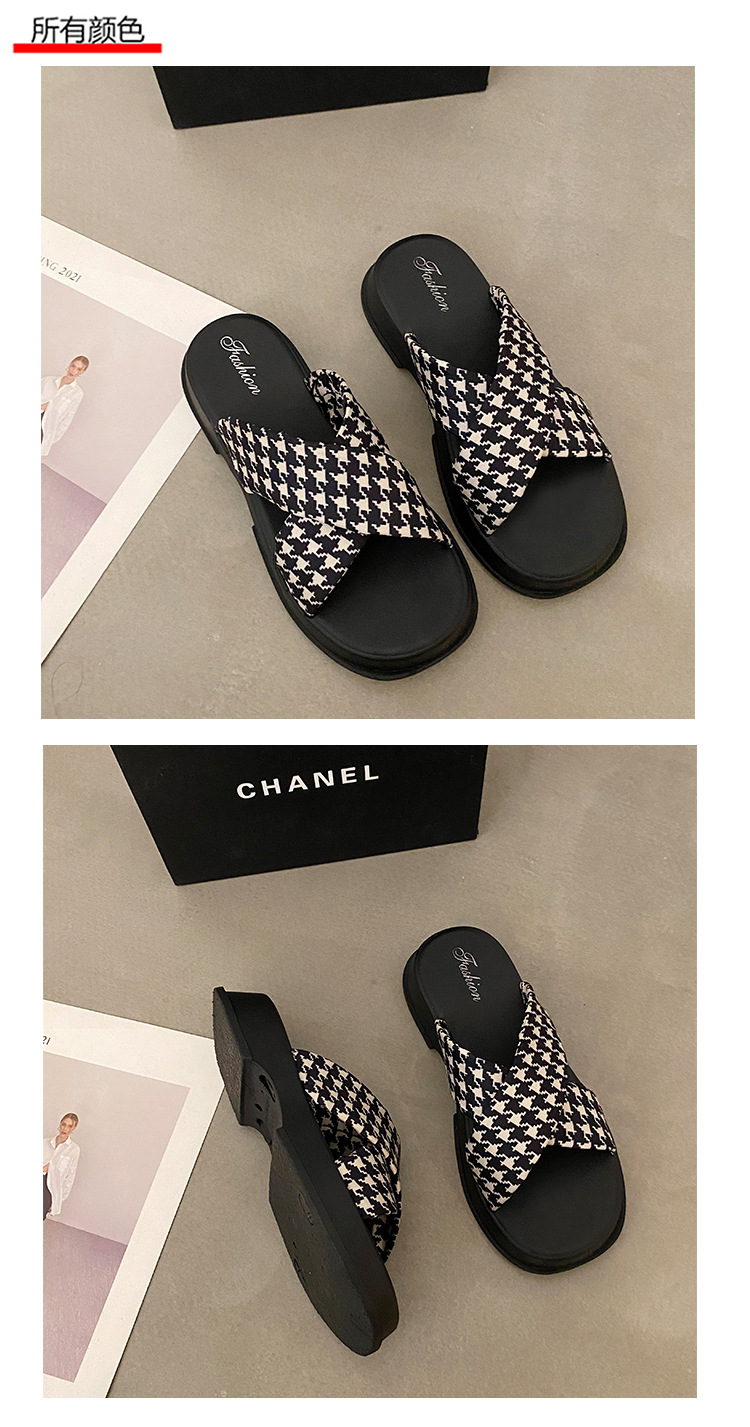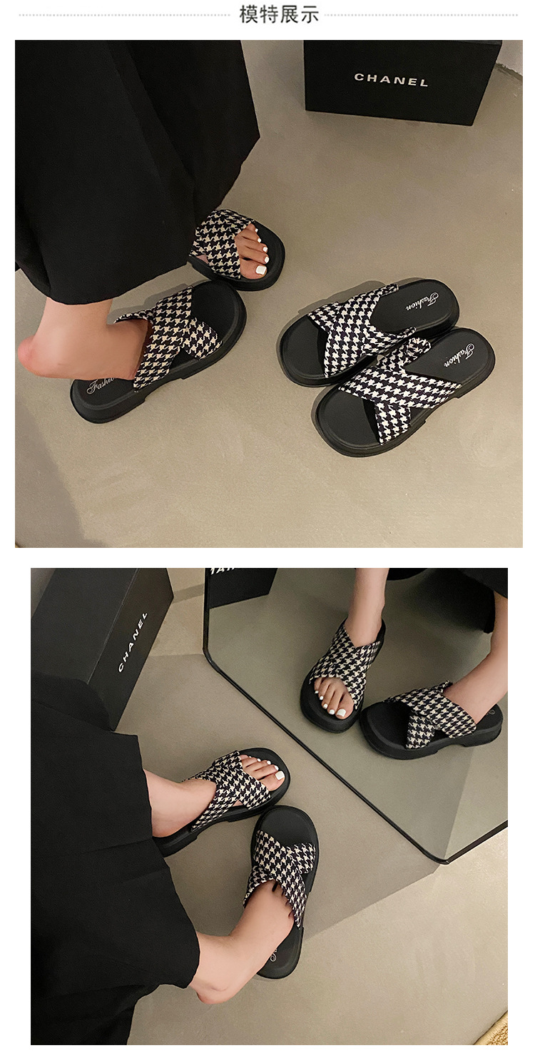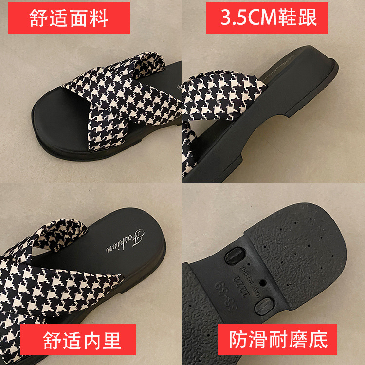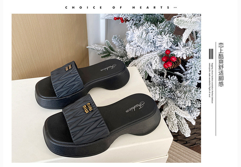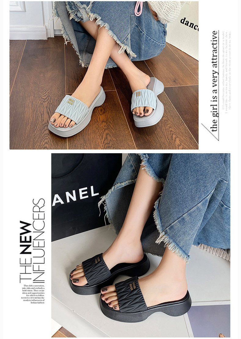 【韩版网红 厚底拖鞋女】夏季休闲外穿 新款纯色海边沙滩一字拖