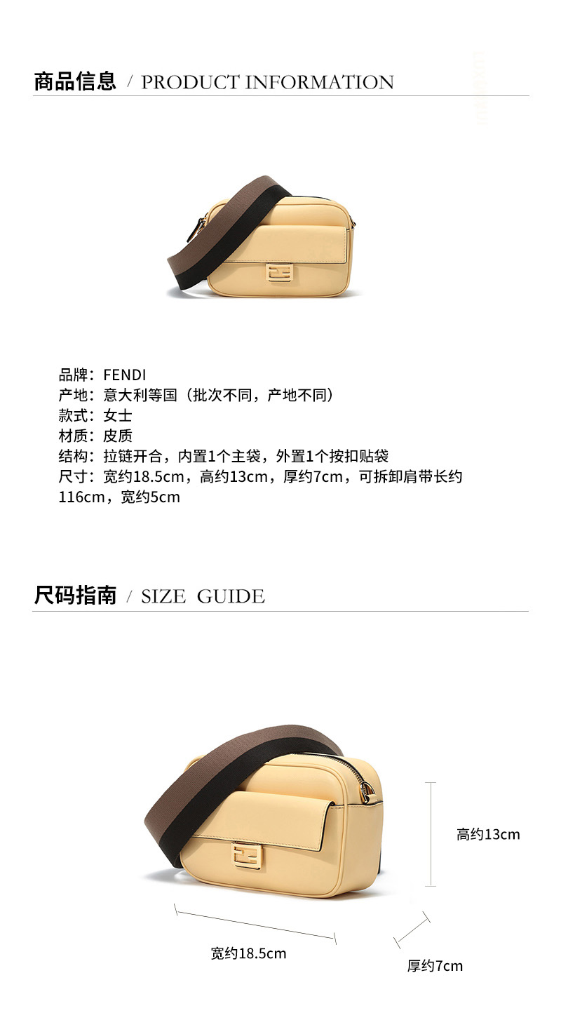 品牌:FENDI 芬迪产地:意大利等国(批次不同,产地不同)款式:女士颜色:酒红色材质:牛皮结构:拉链开合,内置1个主袋,1个贴袋,外置1个贴袋尺寸: 宽约19cm,高约13cm,厚约7cm,肩带长约114cm(注:所有尺寸皆为手工测量,存在少许误差,请以实物为准!)