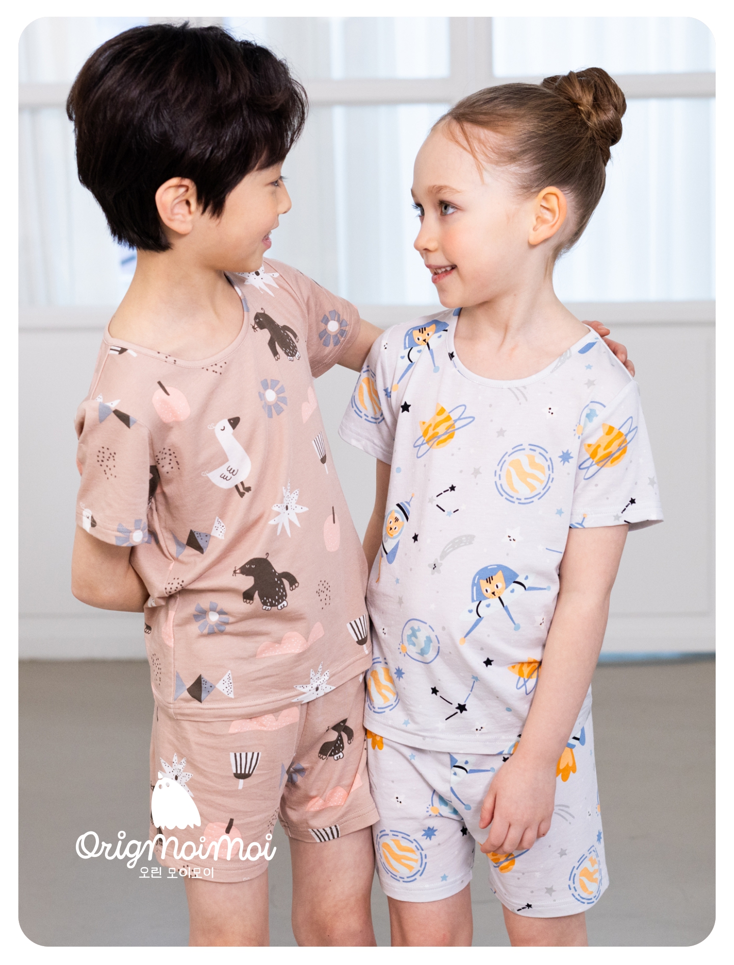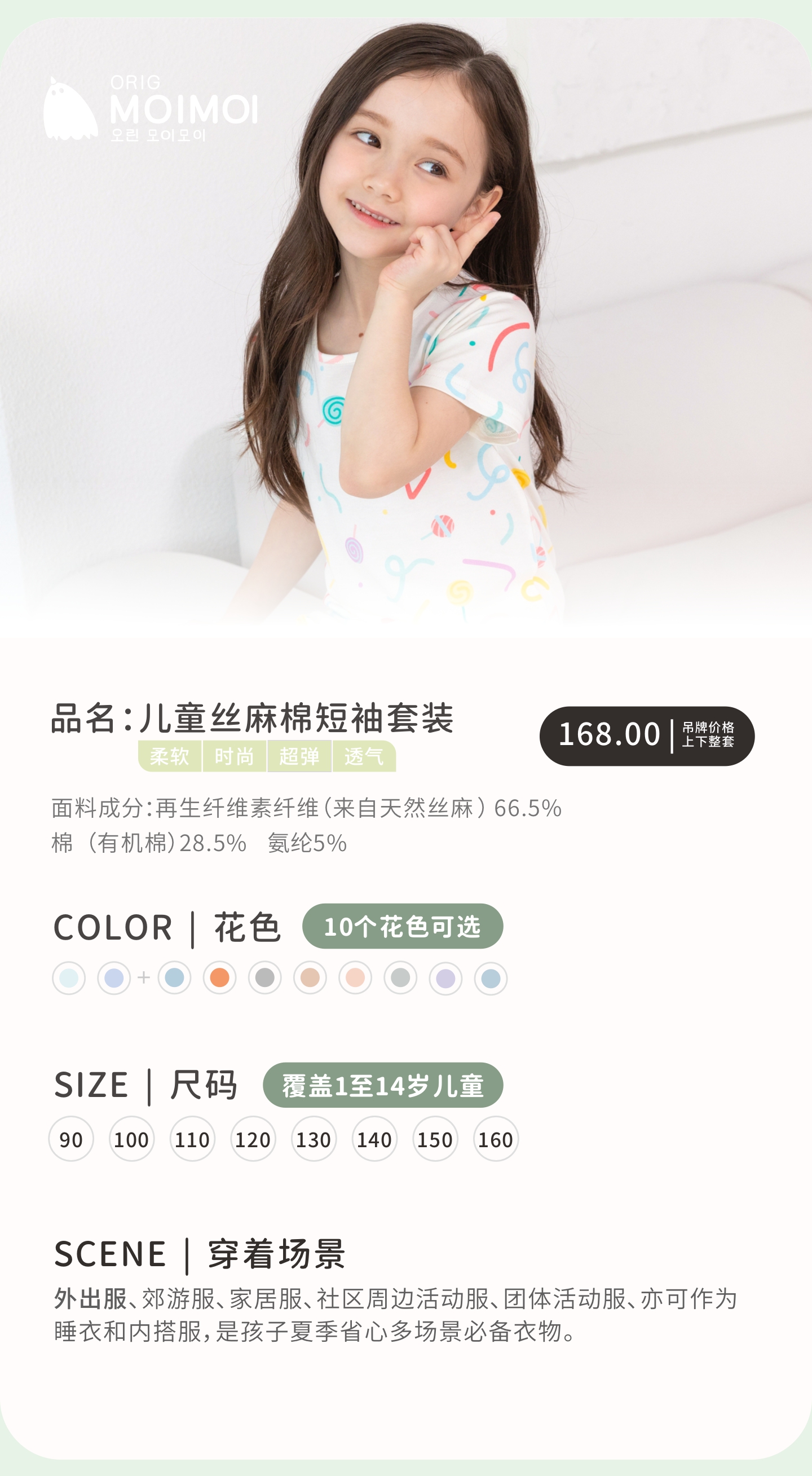 【丝麻棉 短袖套】韩国moimoi春夏5分短袖家居服套装