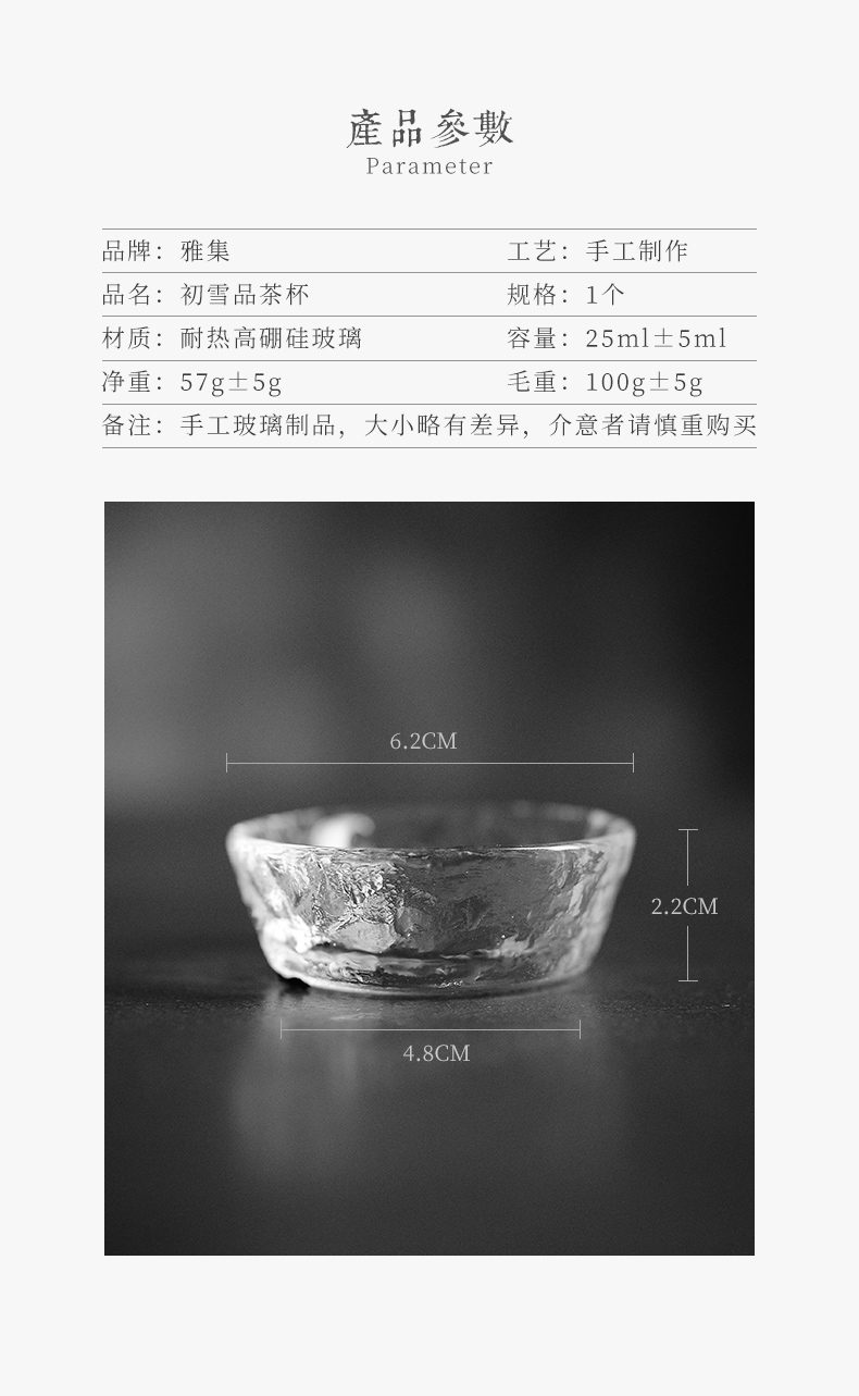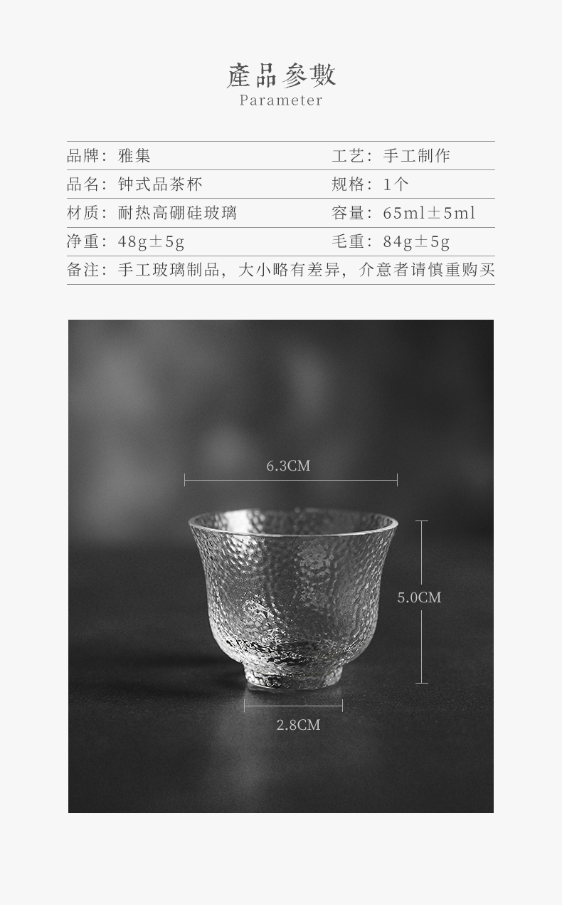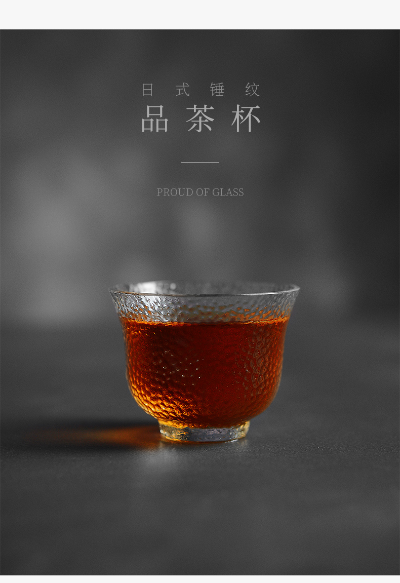 雅集 锤纹玻璃品茶杯手工玻璃小茶杯品茗杯加厚耐热透明玻璃小杯子