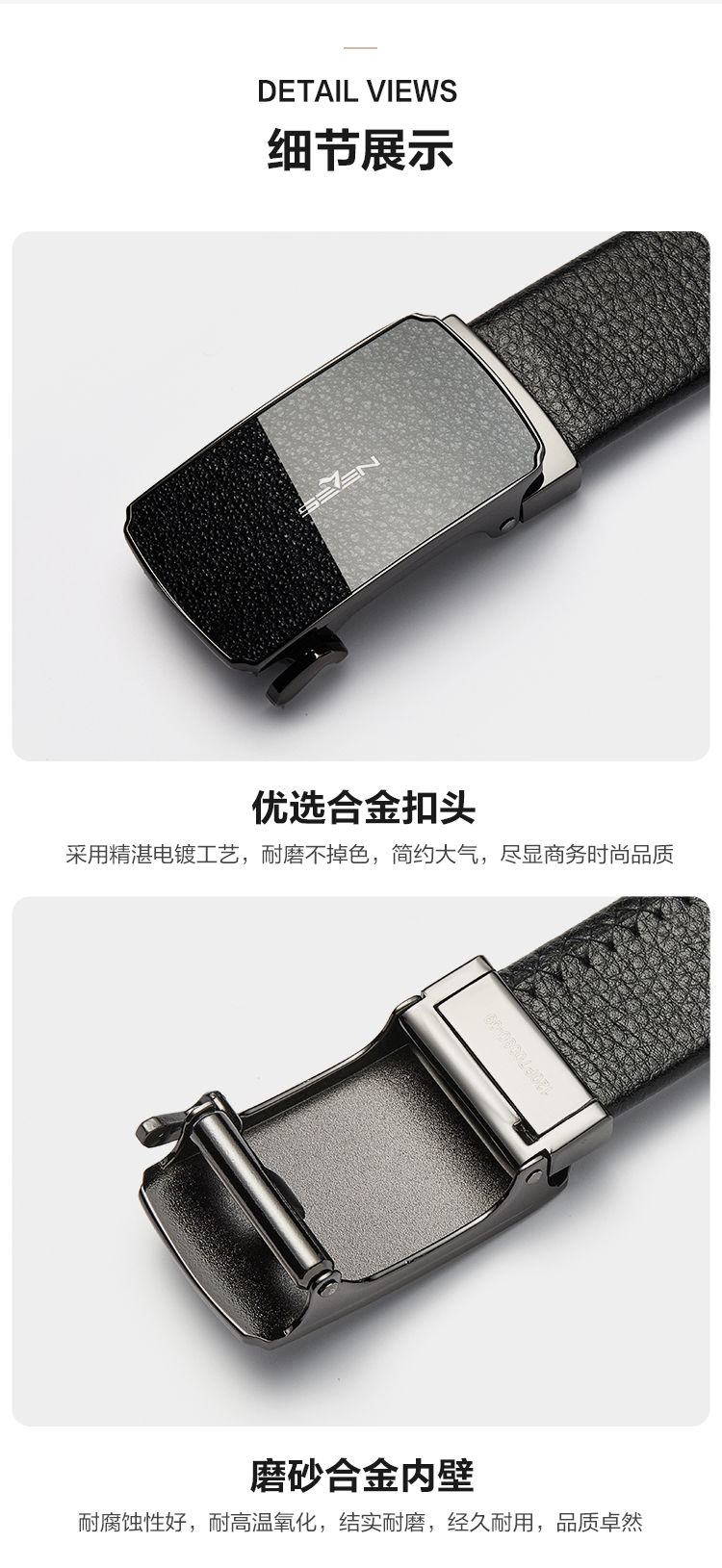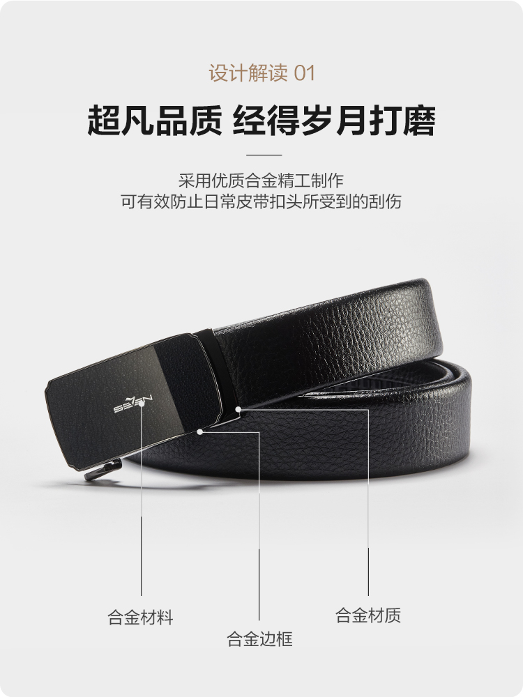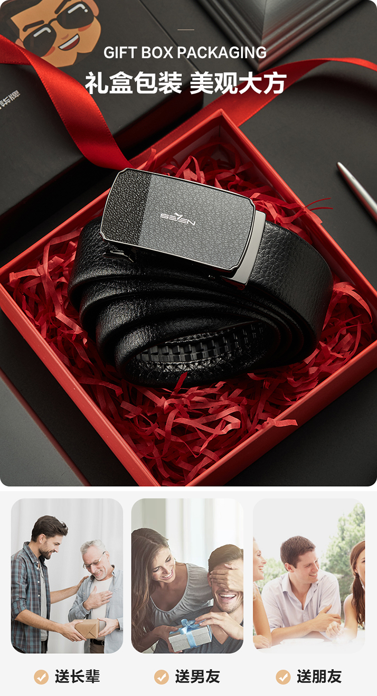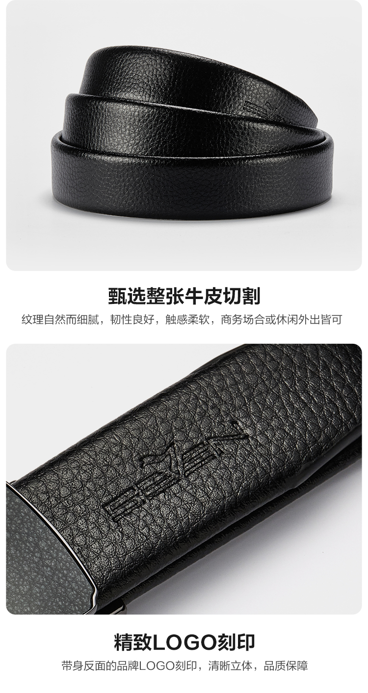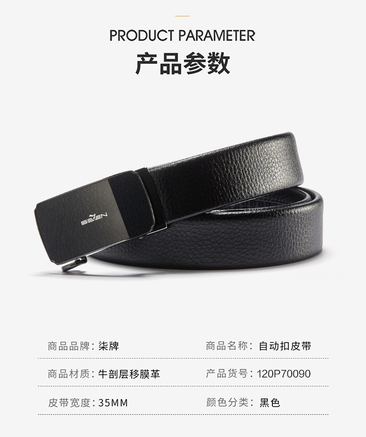 柒牌皮带男士2025年新款商务休闲职场上班自动扣腰带黑色西装裤带128P70030