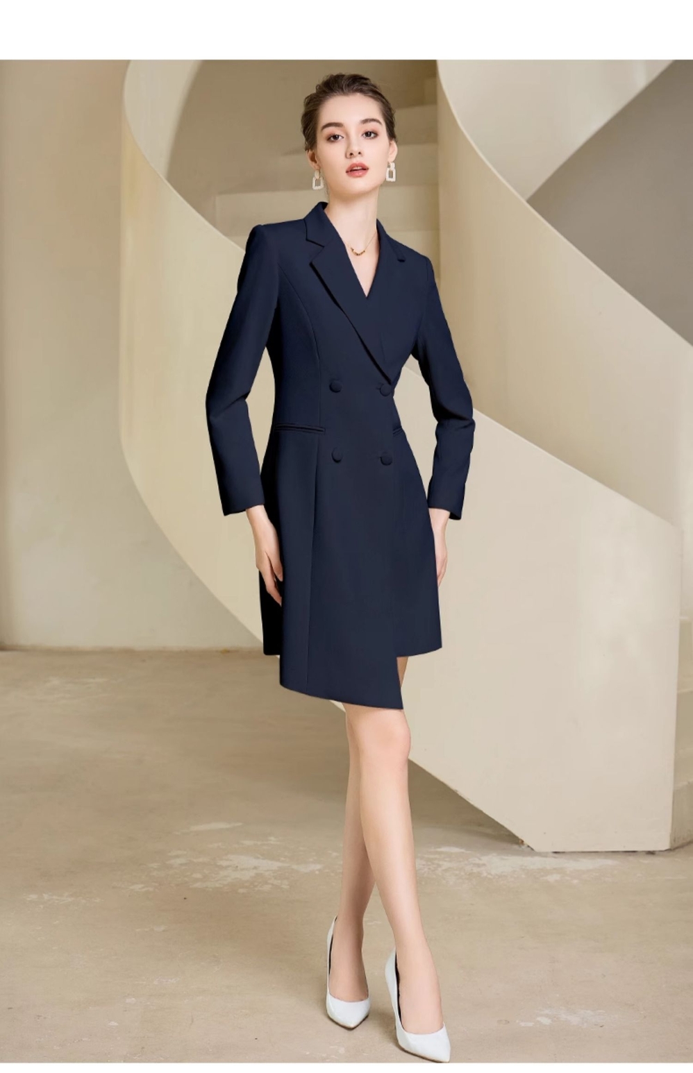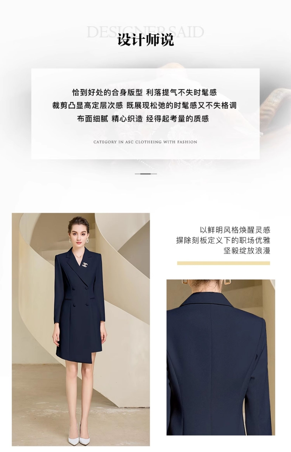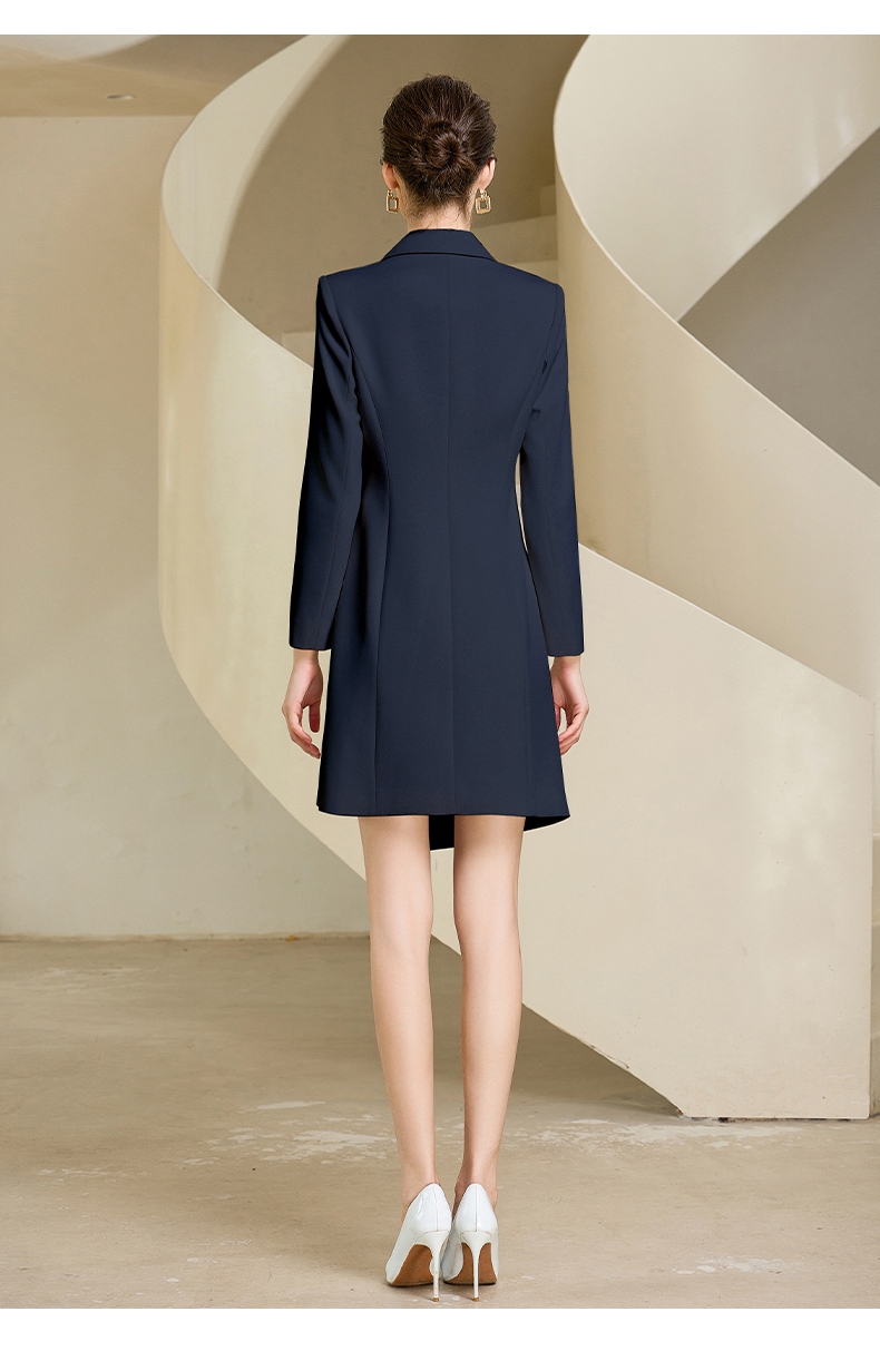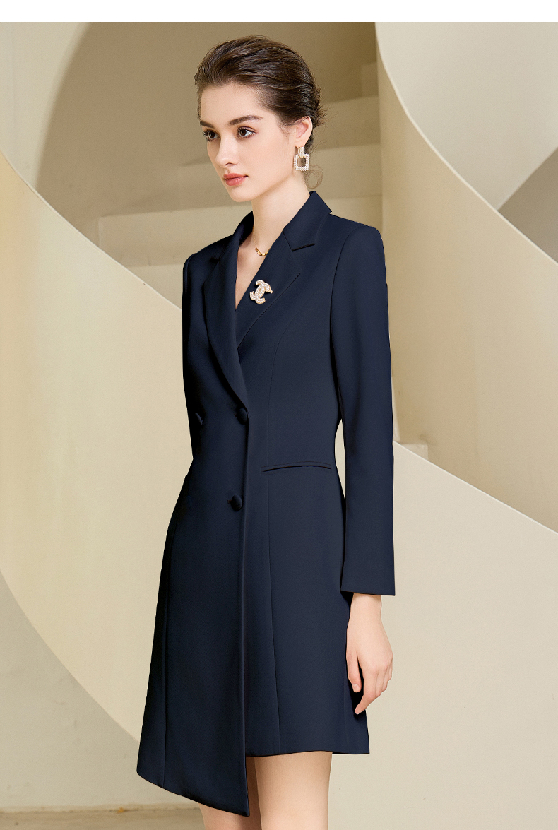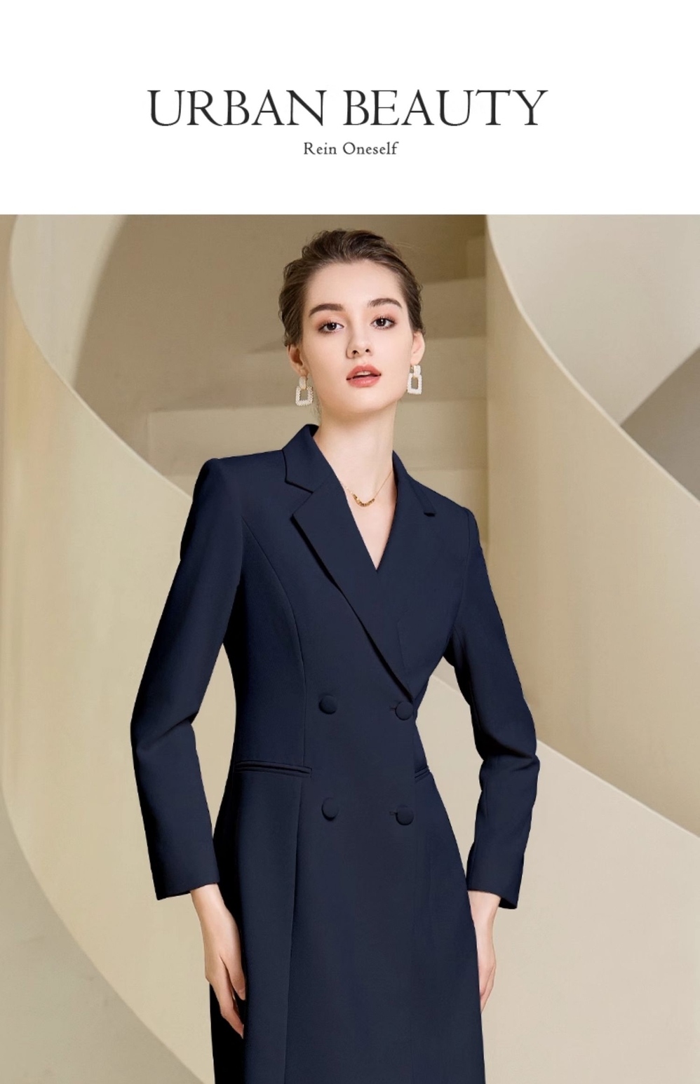 IWY/时尚藏青色长袖职业连衣裙女双排扣售楼部销售物业西装工作服233022Q1