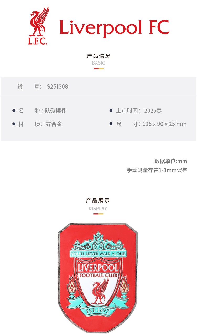 【官网同款】利物浦俱乐部 | 限量版队徽摆件金属质感创意球迷周边