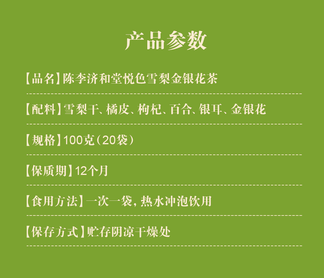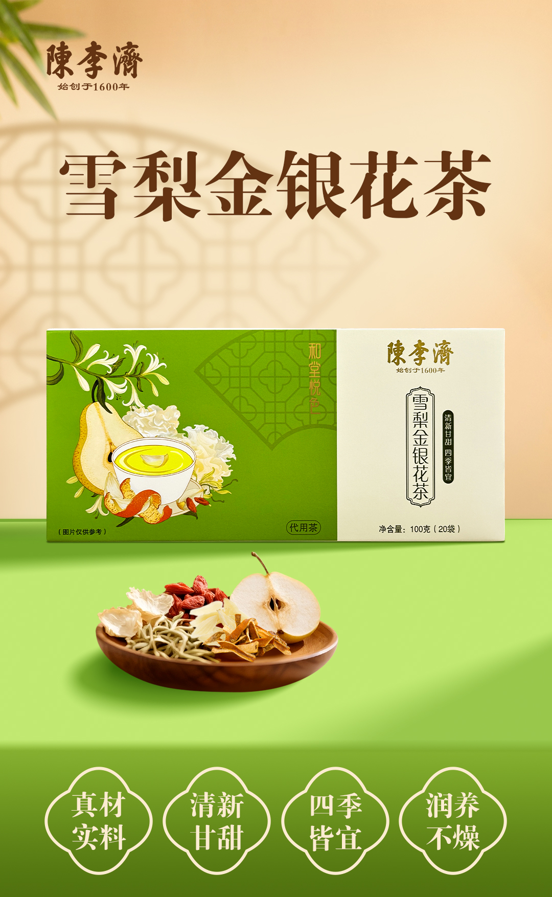 【陈李济雪梨金银花茶】养生袋泡茶 清热润燥,缓解咽喉不适 凉茶养生花茶 100克 (20包)/盒 顺丰发货