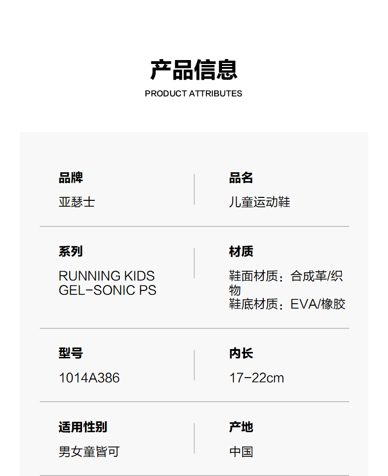 ASICS/亚瑟士童鞋26年新款回弹缓震网面魔术贴跑步鞋GEI-SONICPS