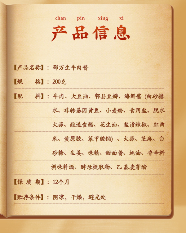 上海特产邵万生牛肉酱拌面拌饭酱调料正宗厚切调味辣酱料底料烹饪