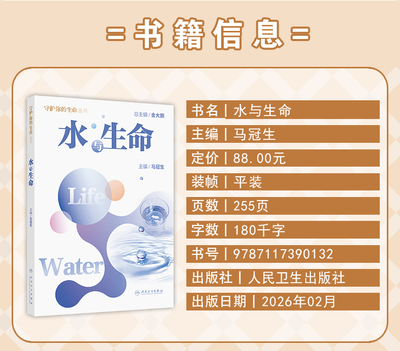 水与生命 马冠生 提供正确的饮水与健康知识,教会大家将饮水与健康知识融入和应用到实际生活中 9787117390132 人民卫生出版社