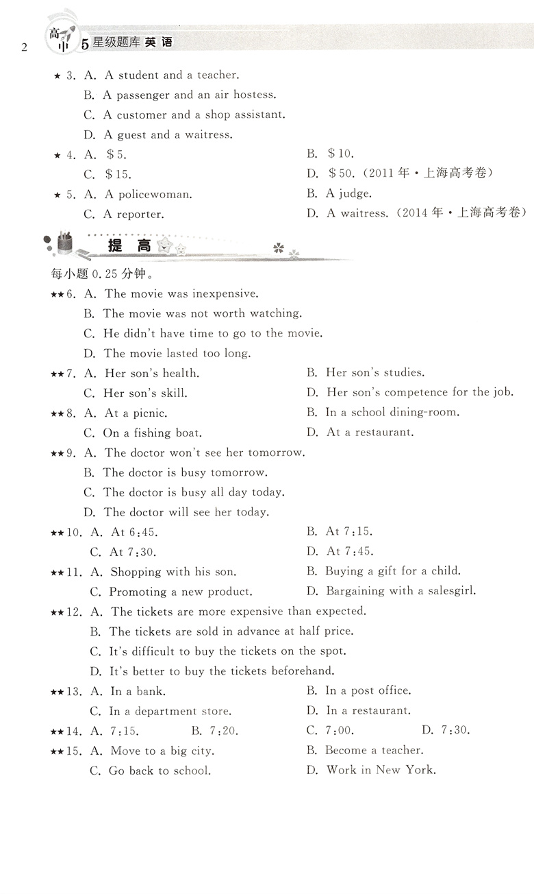 高中五星级题库 英语 附赠答案详解及错题本 经典题 拓展题 全真题 直击高考精选题库星级题库 教辅中的常春藤 上海科技教育出版社