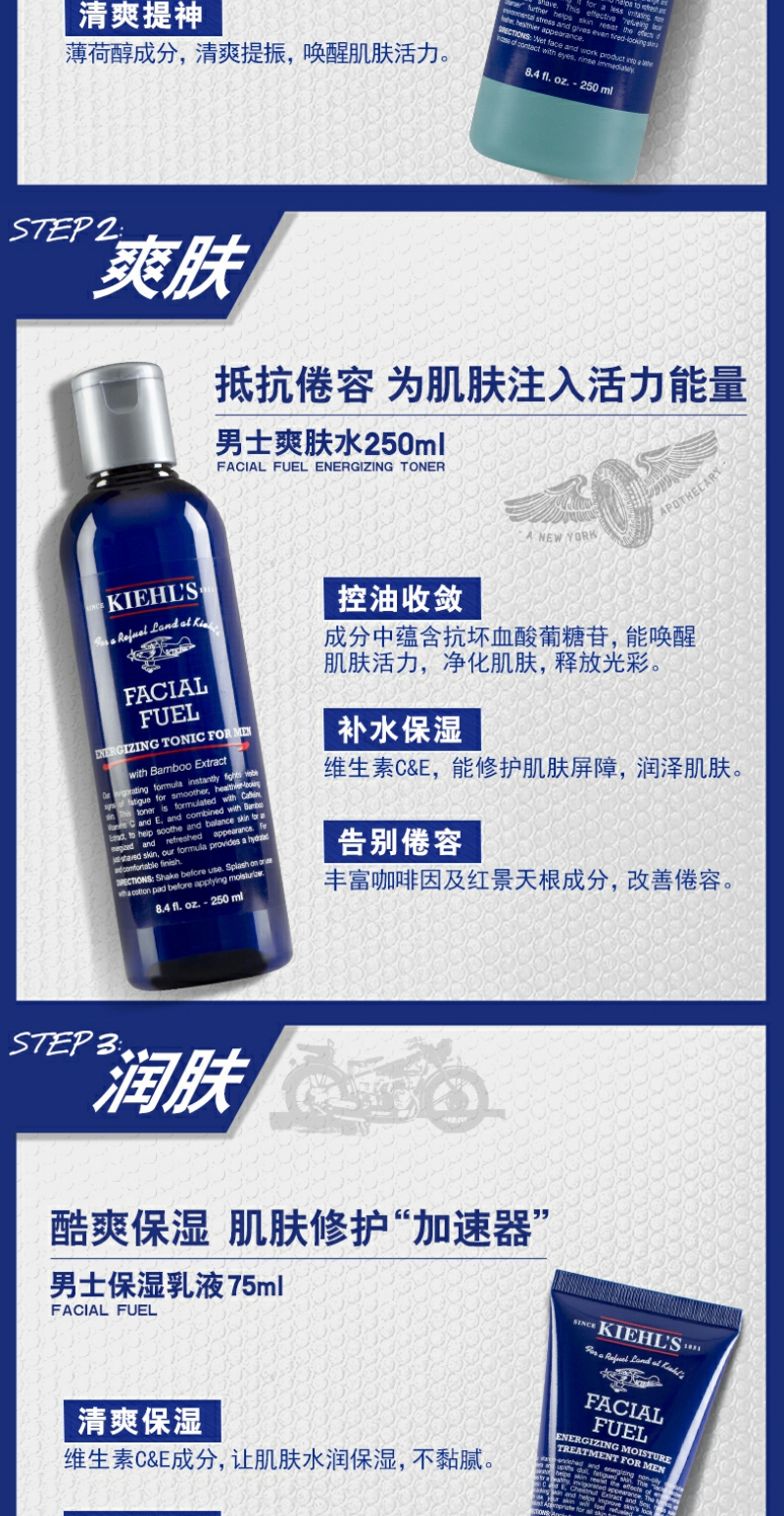 【YZ】Kiehl`s/科颜氏男士洗面奶水乳三件套装洁面乳爽肤水乳液套盒