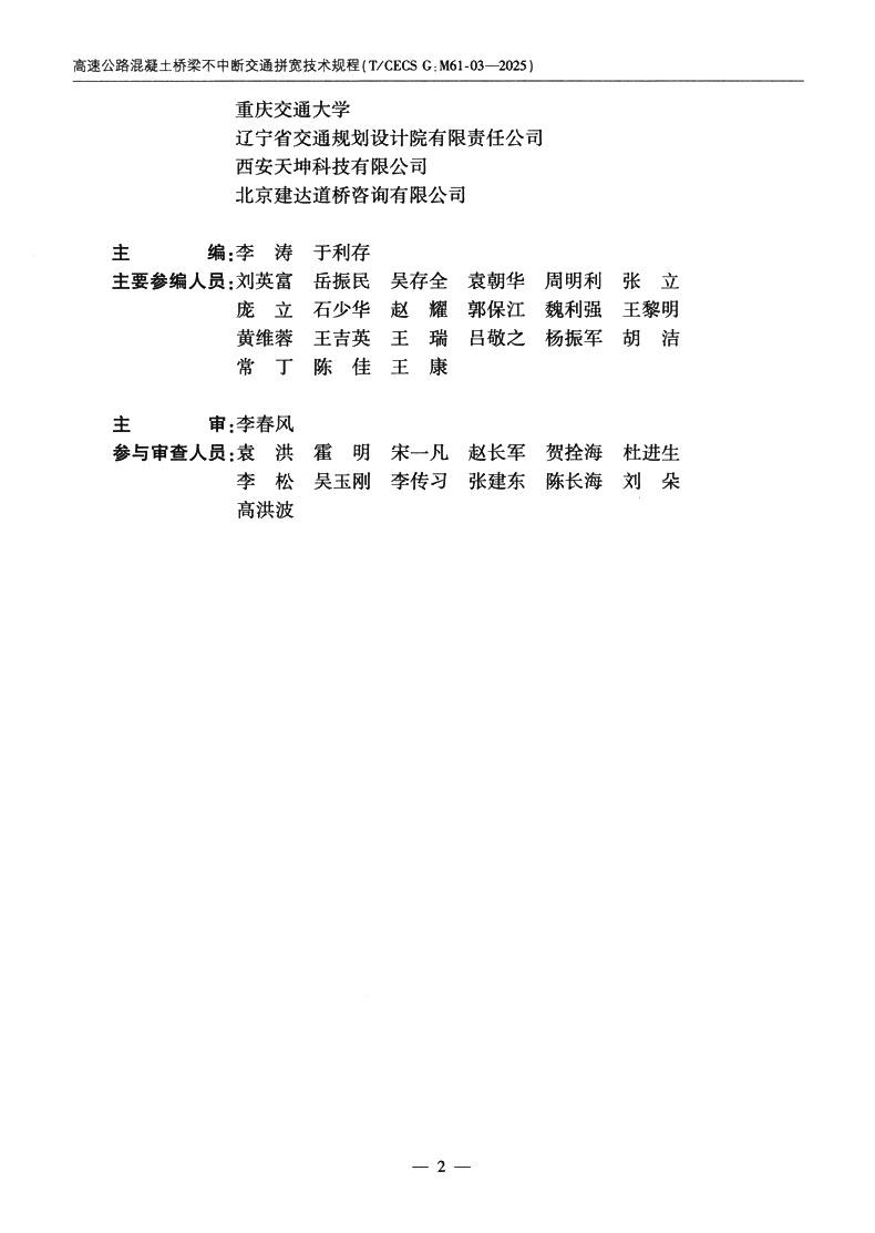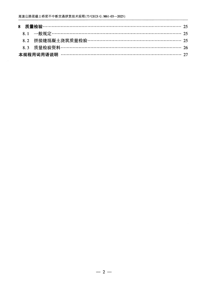 书名:高速公路混凝土桥梁不中断交通拼宽技术规程(T/CECS G:M61-03—2025)