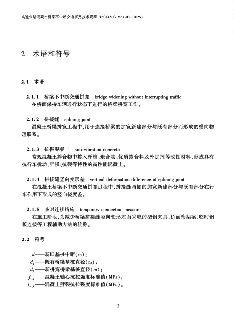 高速公路混凝土桥梁不中断交通拼宽技术规程(T/CECS G:M61-03—2025)