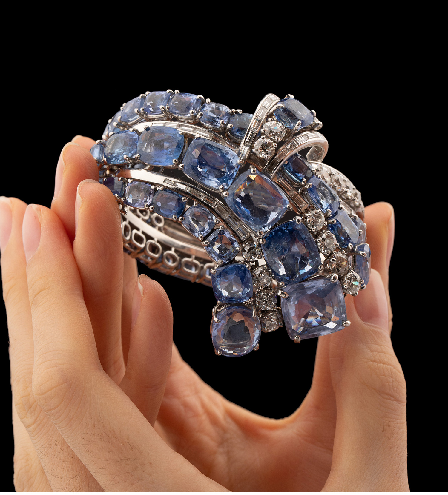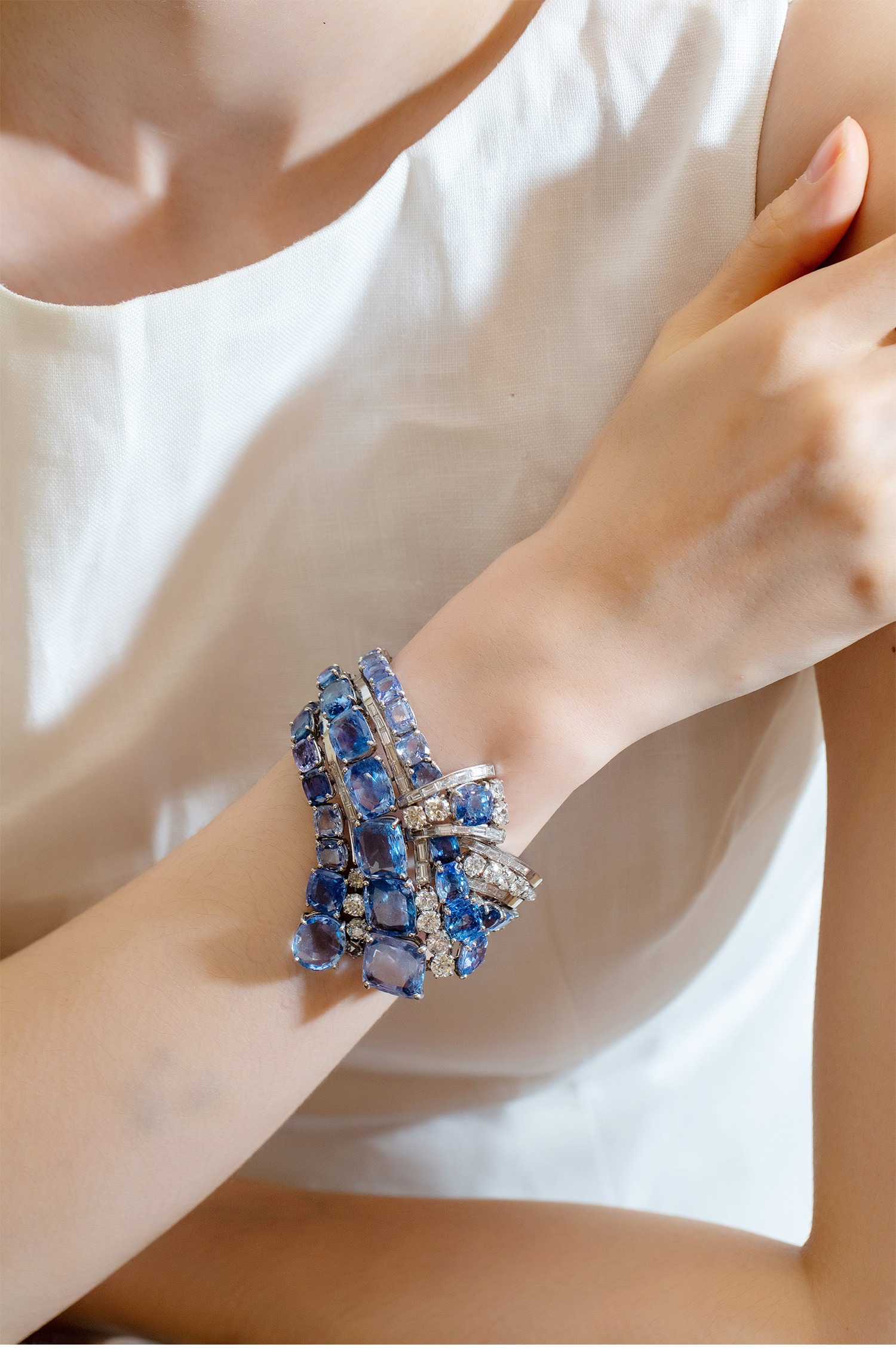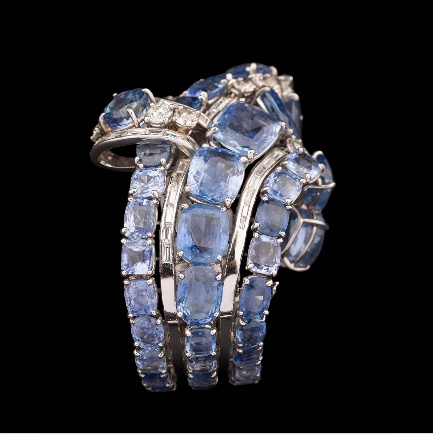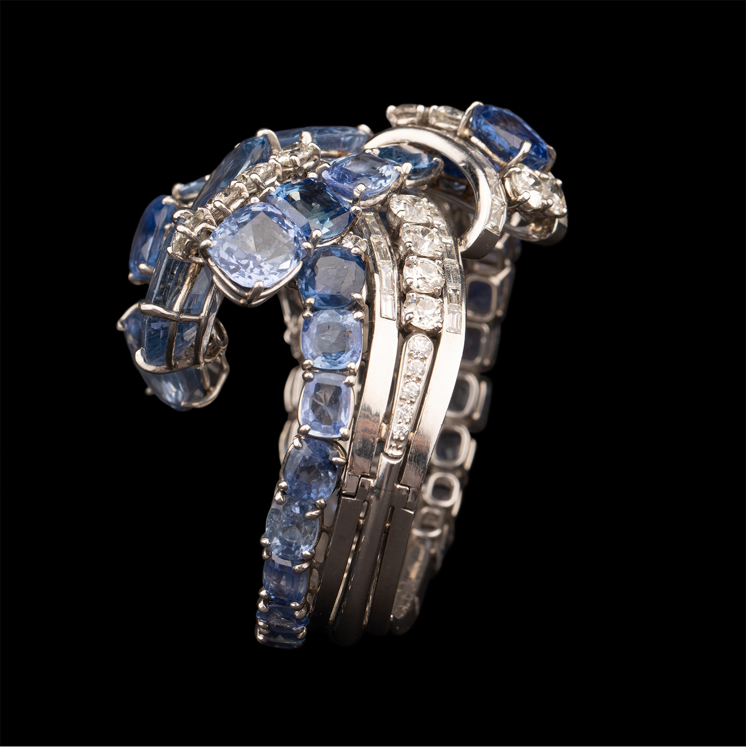 1950年代美国出品铂金镶嵌钻石及蓝宝石手镯