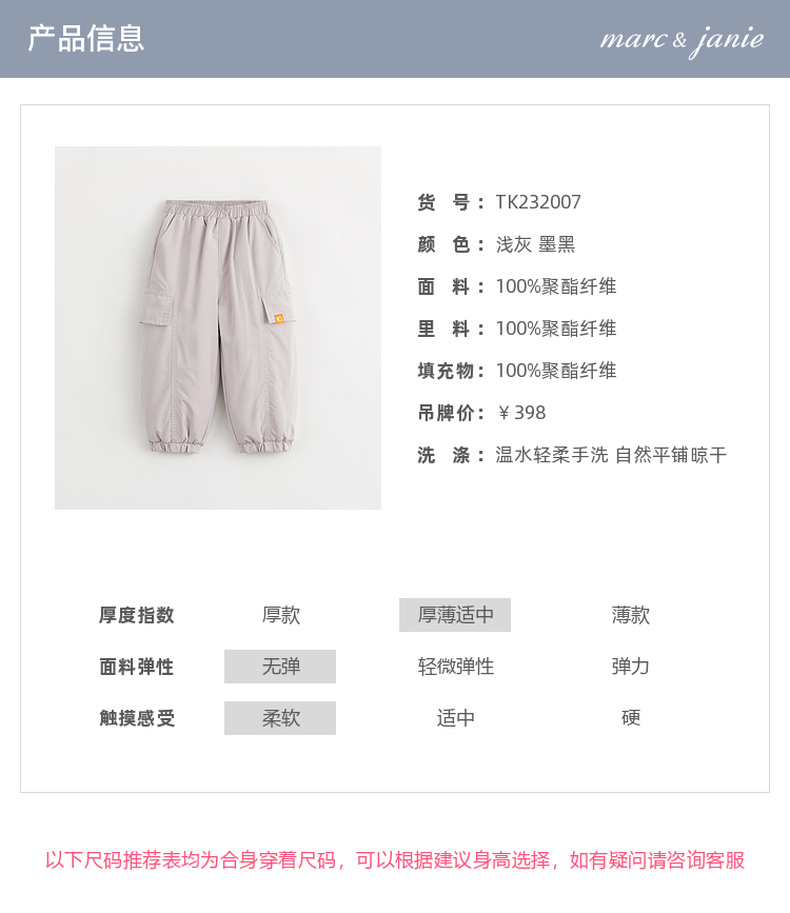 【加绒】马克珍妮冬装新款 男童城市户外保暖束脚裤工装裤232007
