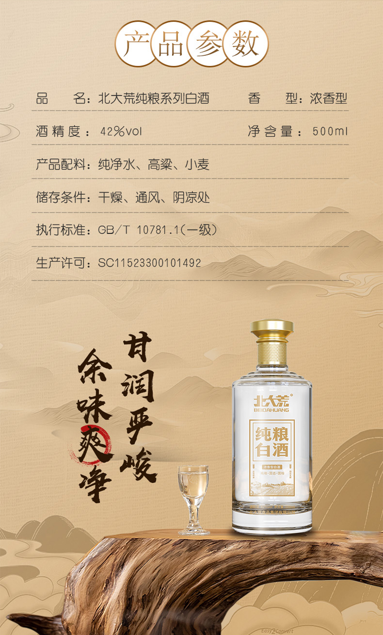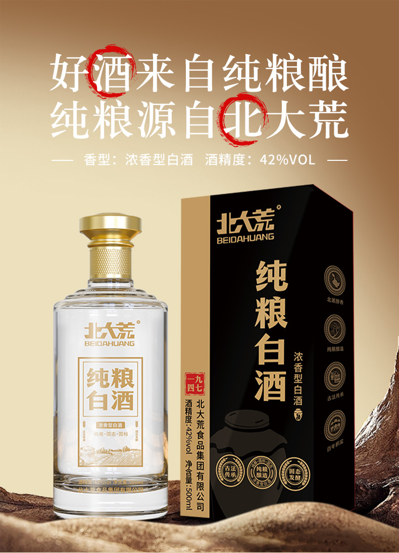 【中国农垦】北大荒纯粮系列白酒(浓香型42度)盒装500ml*2