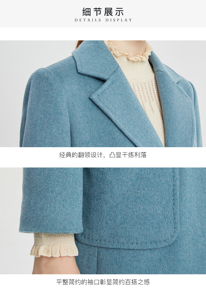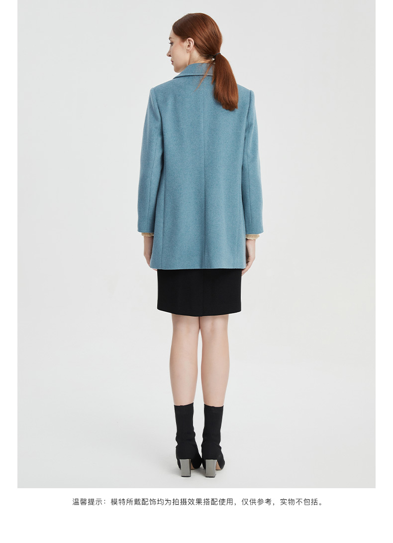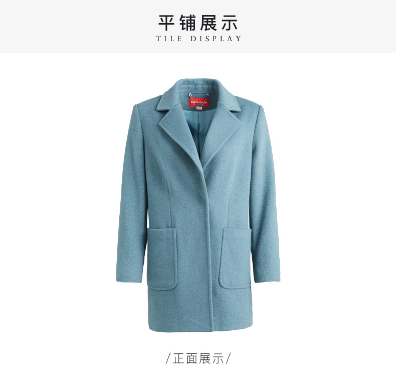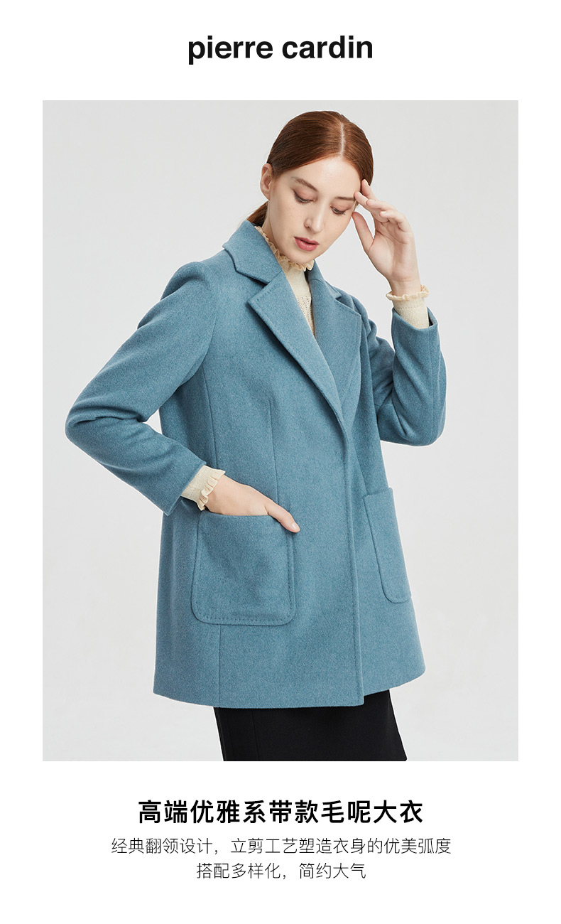 皮尔卡丹女装大衣蓝色一手长西服领通勤羊毛呢外套P1408C1996G0