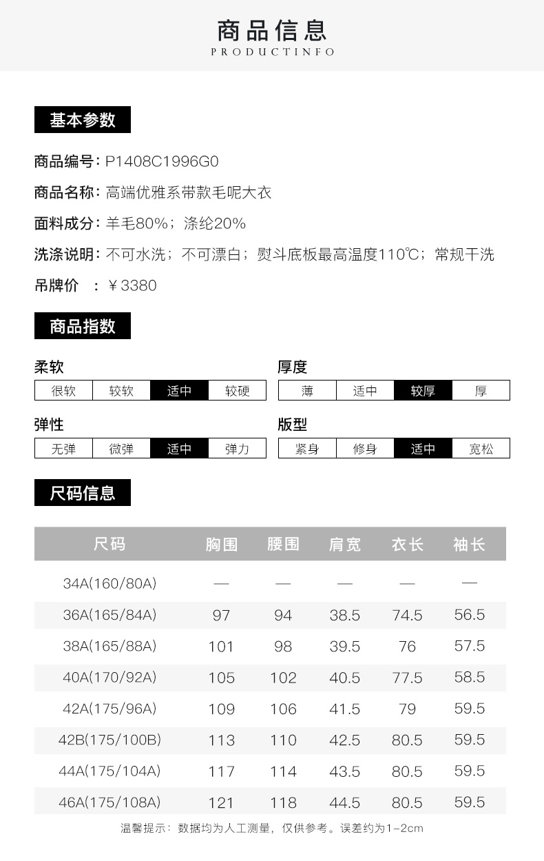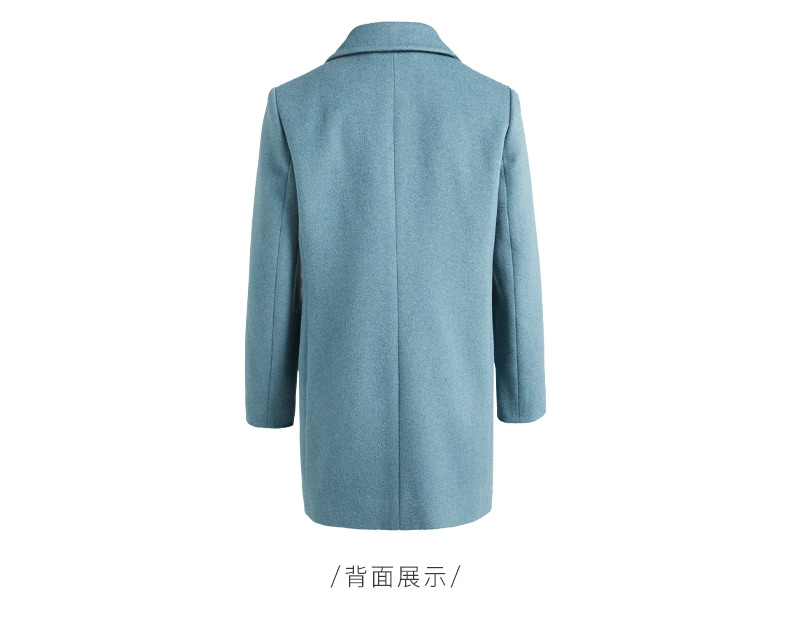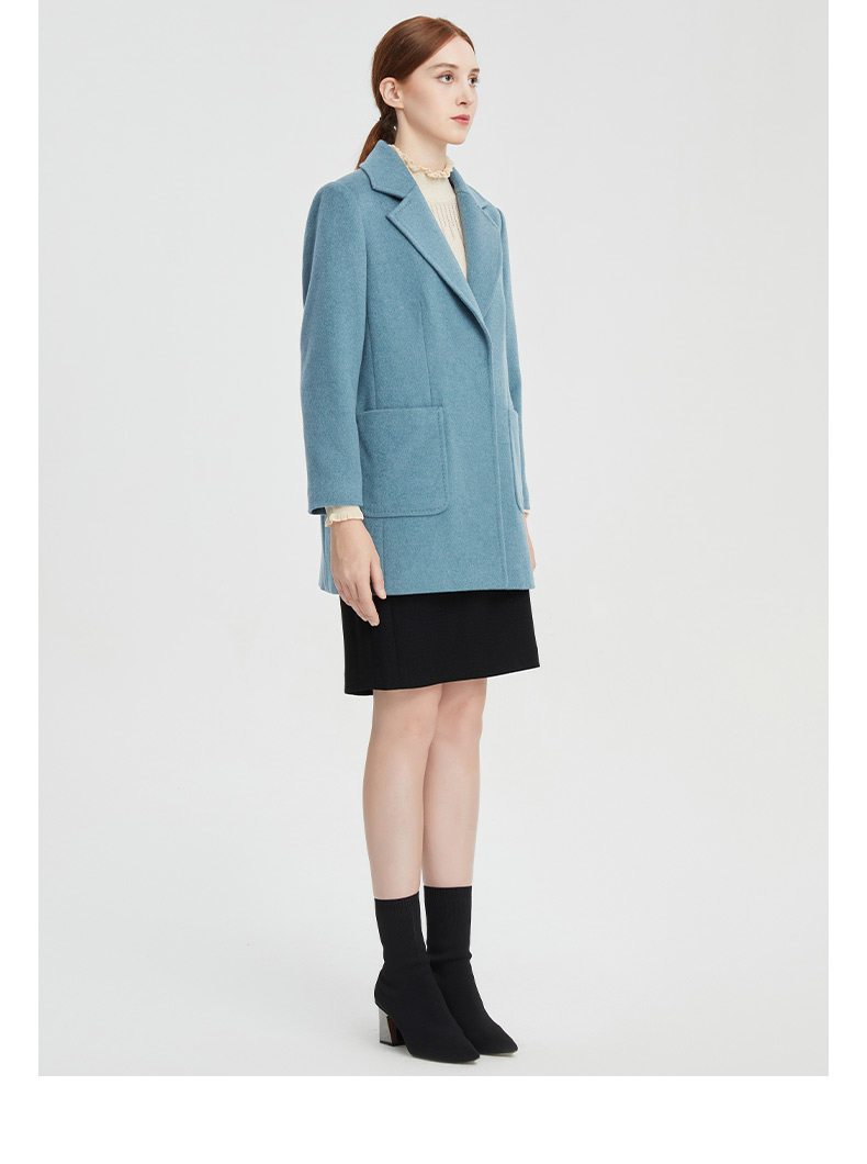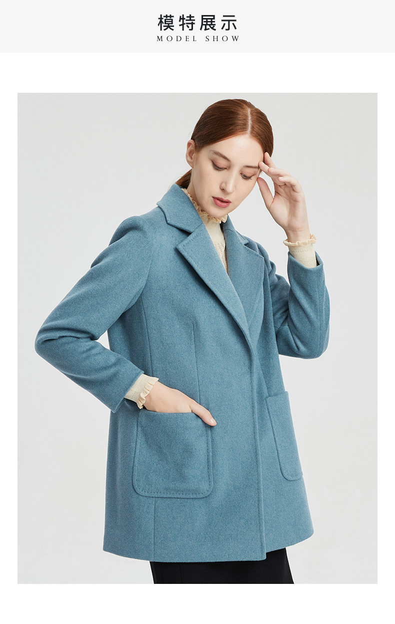 皮尔卡丹女装大衣蓝色一手长西服领通勤羊毛呢外套P1408C1996G0