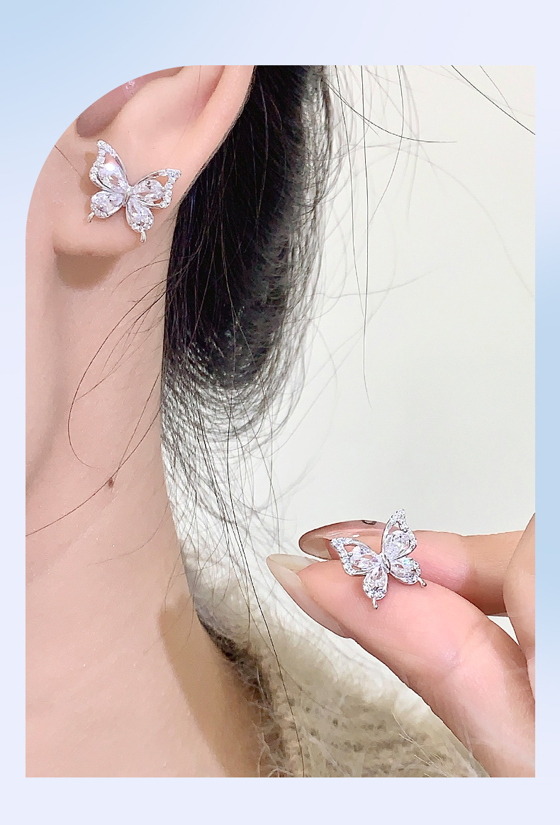 卡蒂罗/KADER 蝶舞光影耳钉 闪闪蝶舞满镶钻石璀璨闪耀气质款纯银耳饰 闪光蝴蝶秋冬穿搭必备单品优雅百搭
