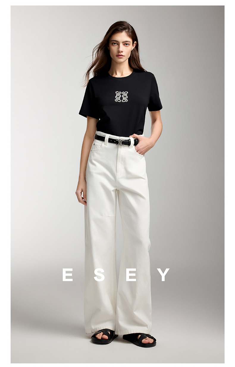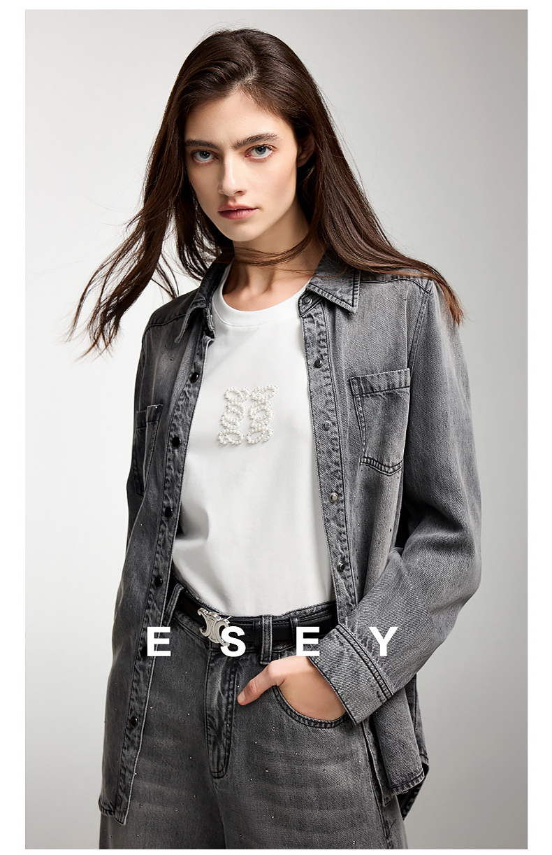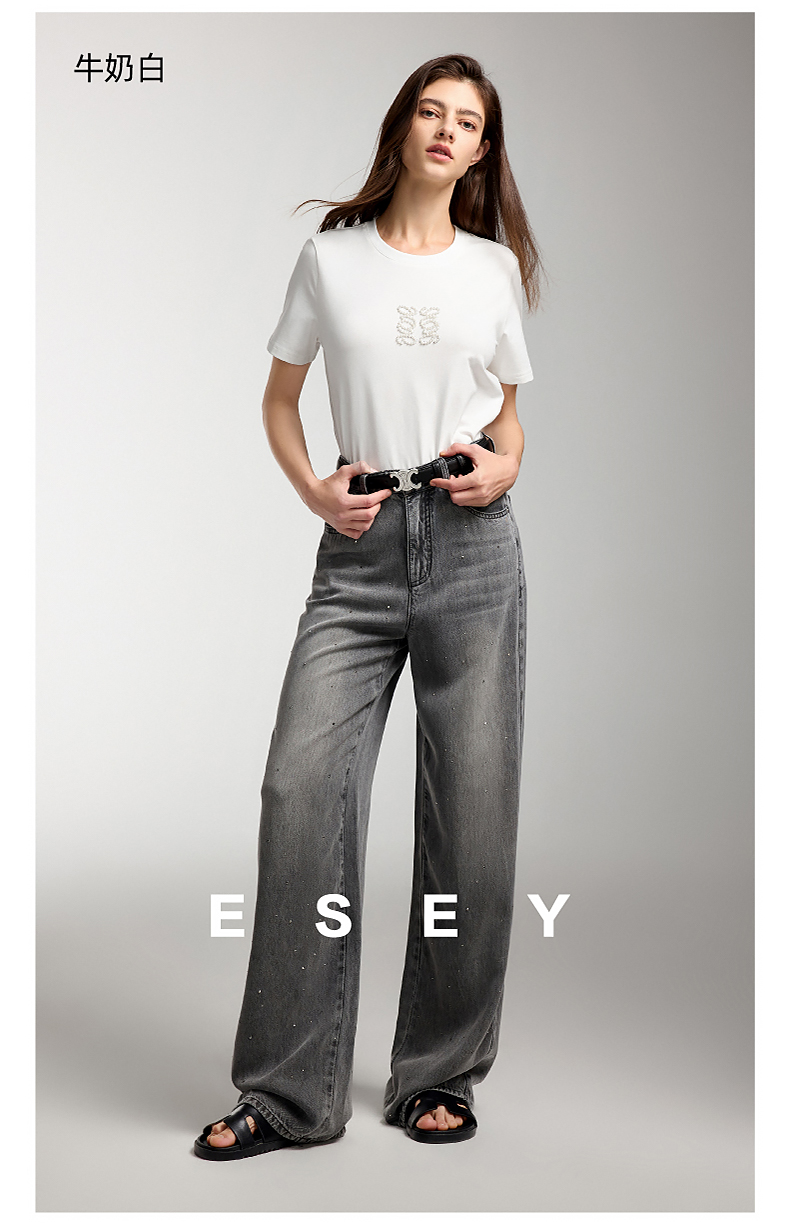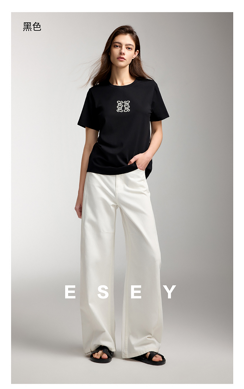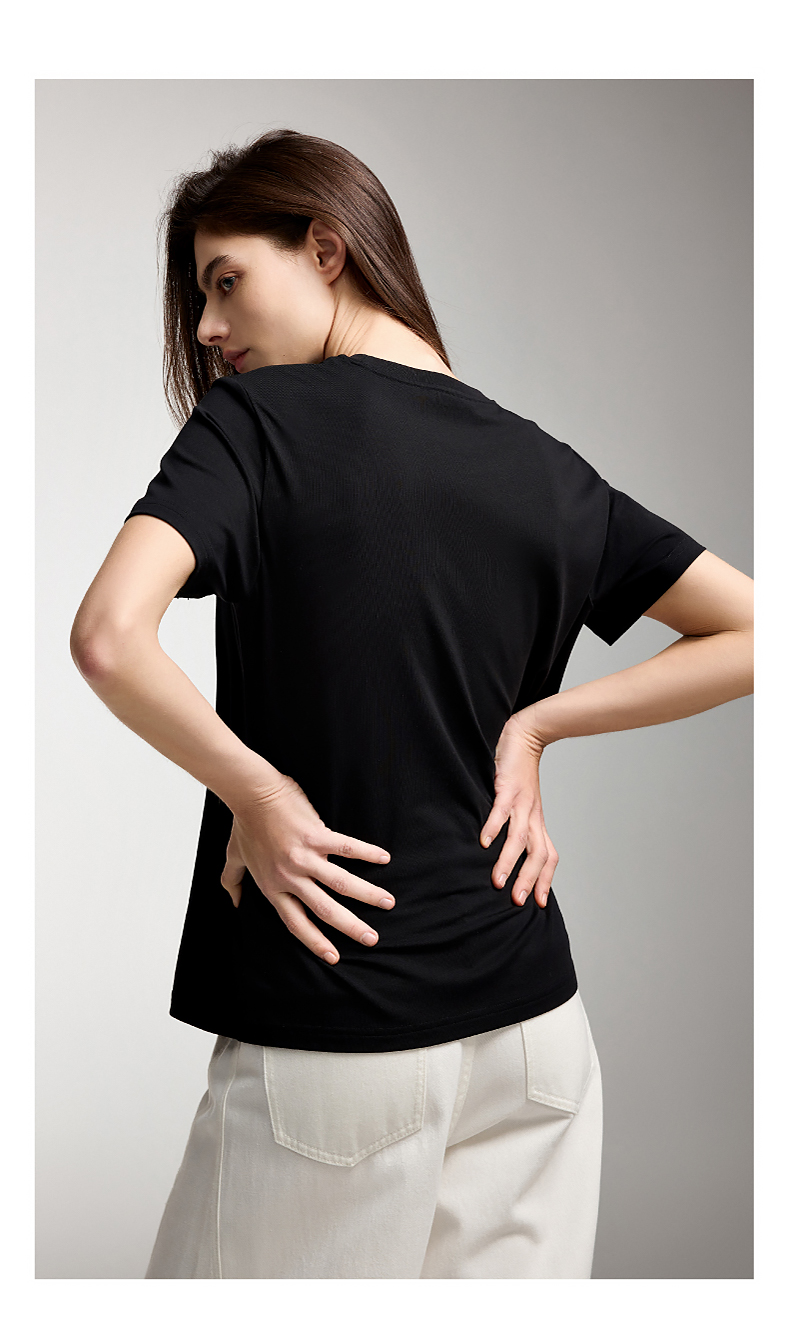 【莱赛尔棉正肩T恤】逸阳珍珠烫钻修身显瘦圆领抑菌上衣5112