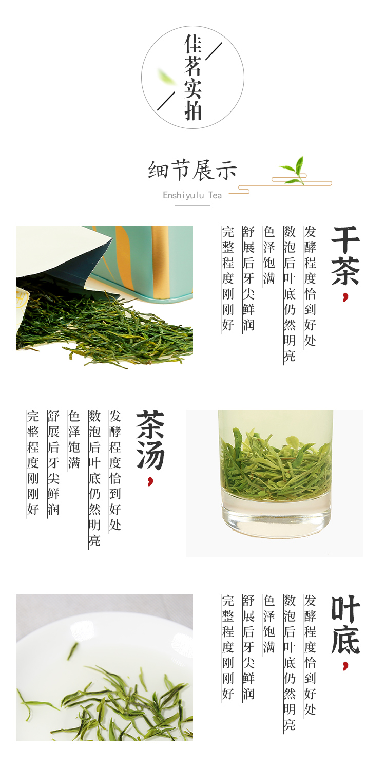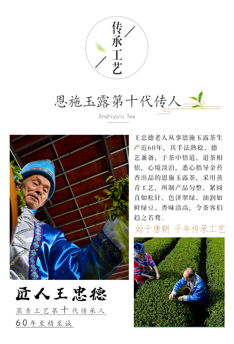 恩施明前茶极好,还好在它工艺独到、品质精粹。就拿金苔香名茶恩施玉露来说——6斤鲜叶,50000多颗一芽一叶,先蒸后炒,历经八大工序。最终才只得1斤干茶。