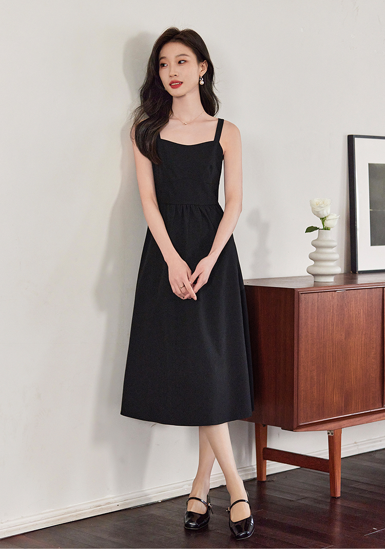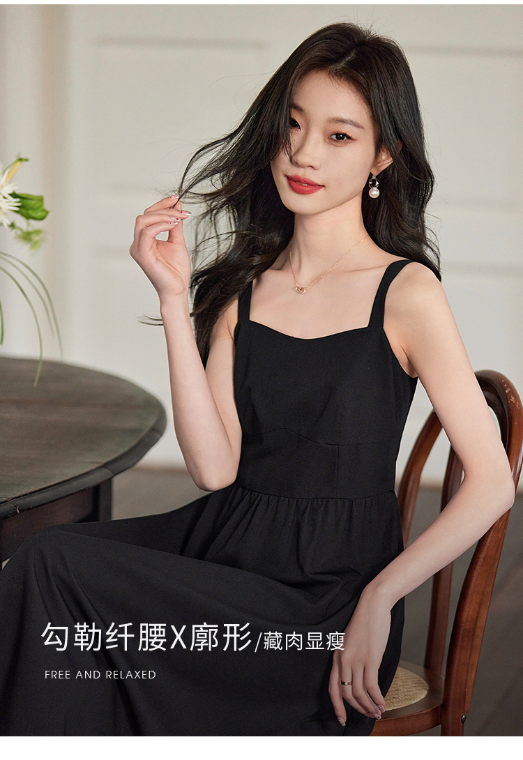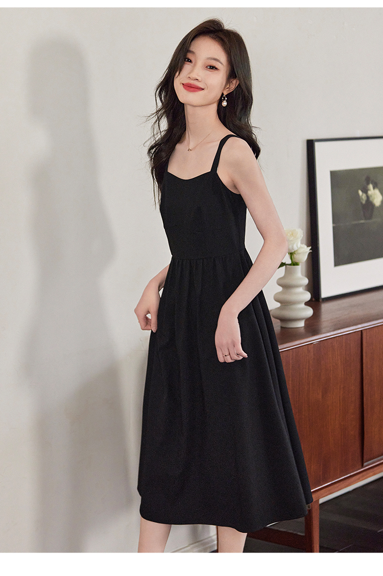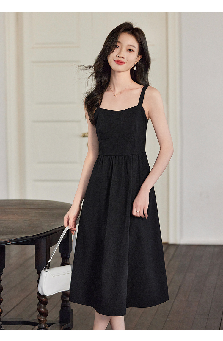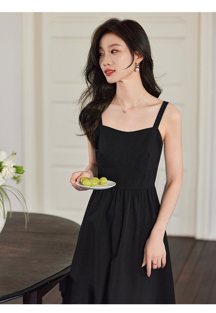 【129选3件,不退换】熙世界黑色吊带连衣裙女2025春新款高级感复古气质赫本风小黑裙