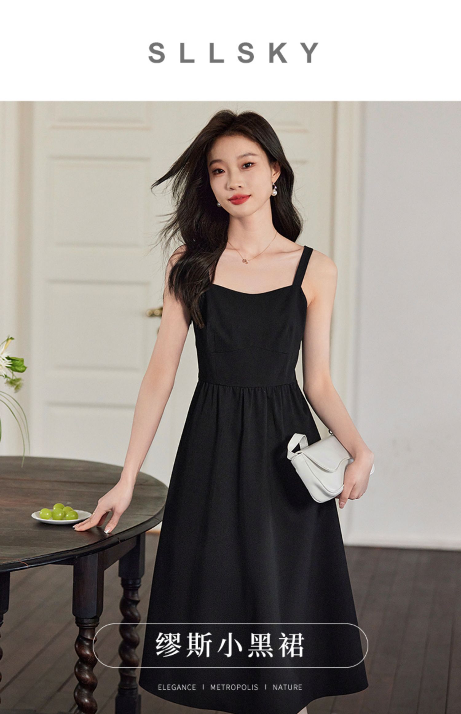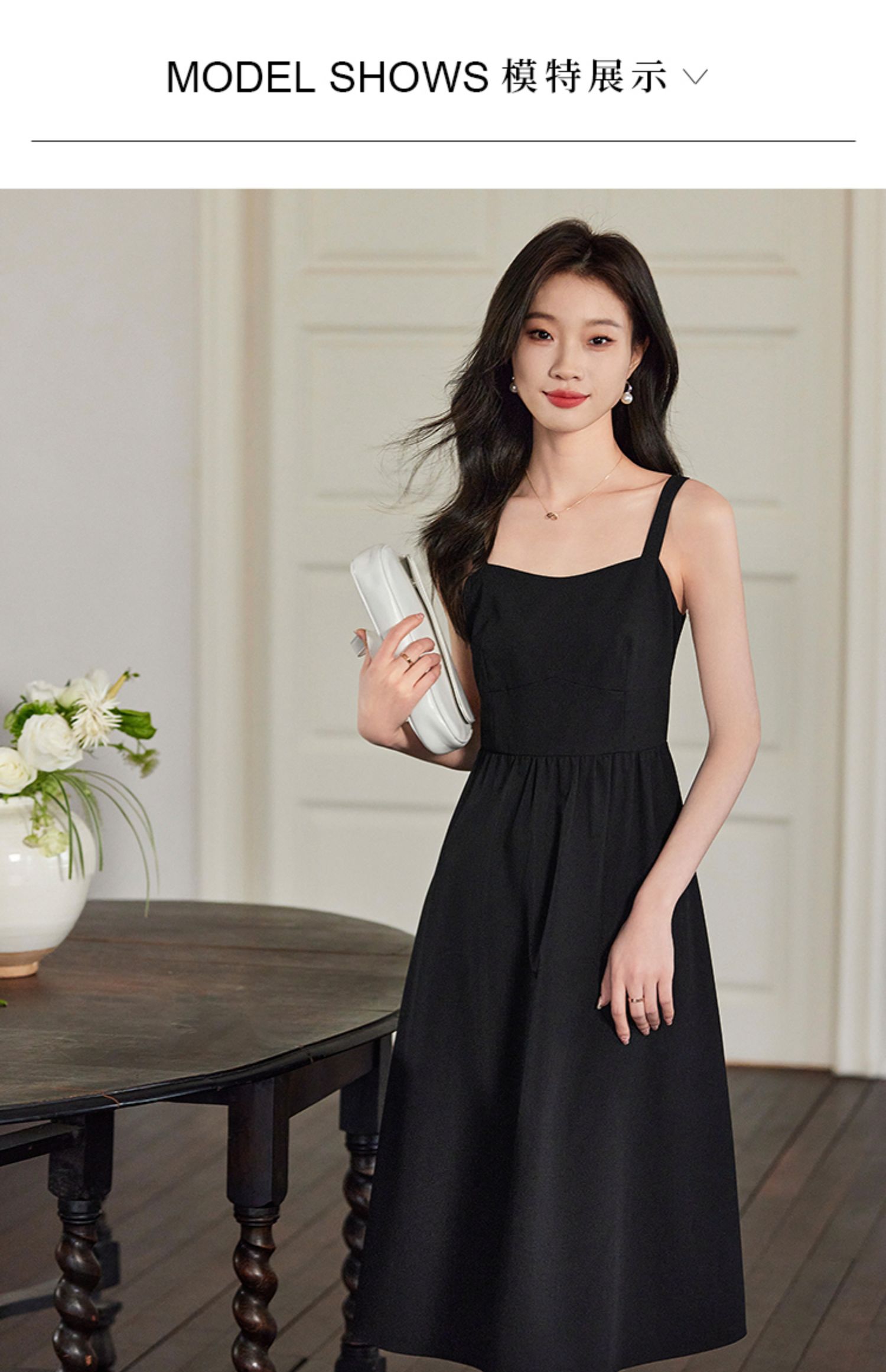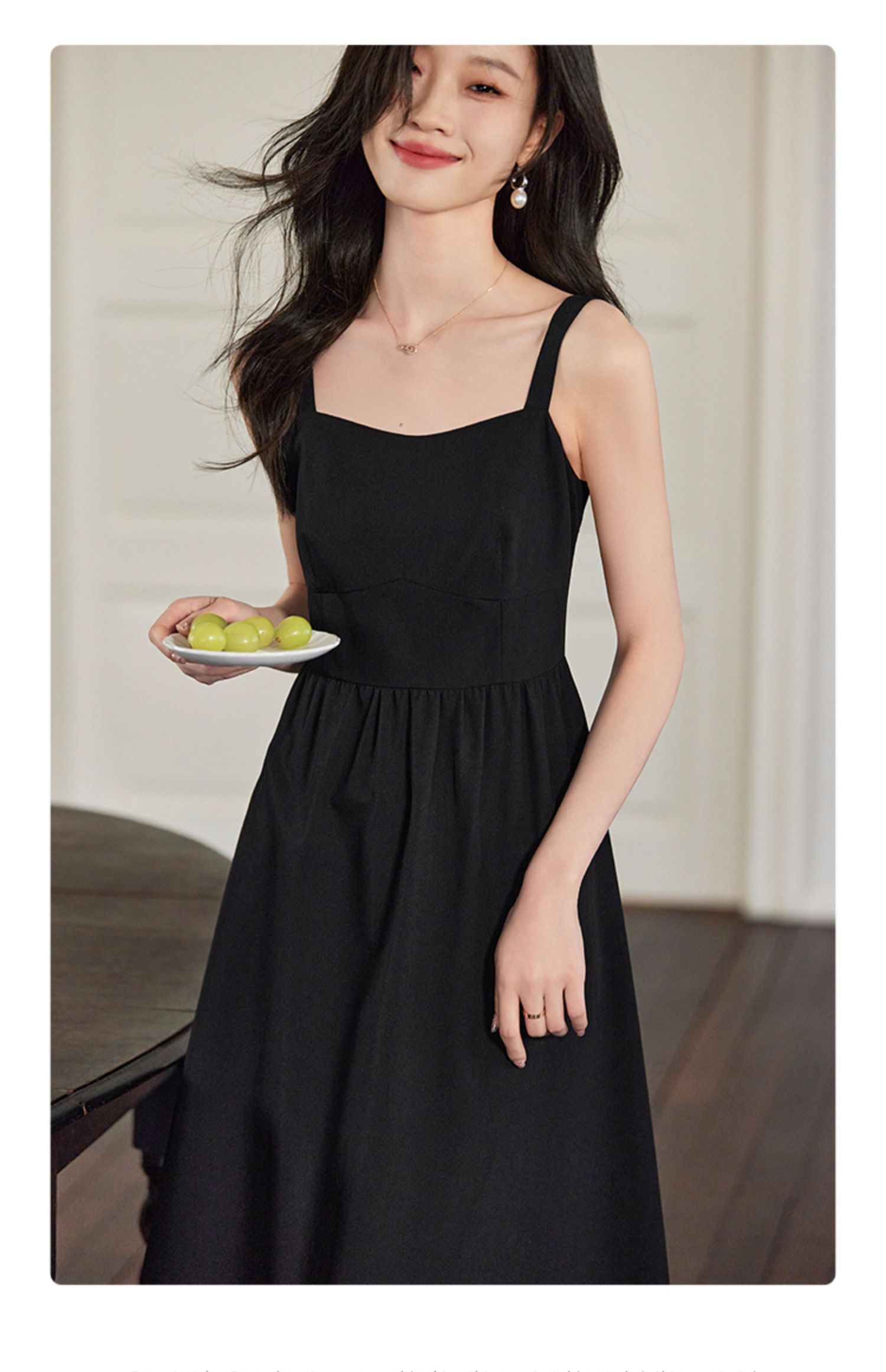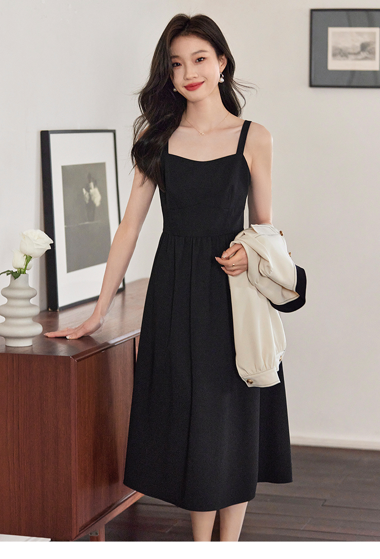 【129选3件,不退换】熙世界黑色吊带连衣裙女2025春新款高级感复古气质赫本风小黑裙