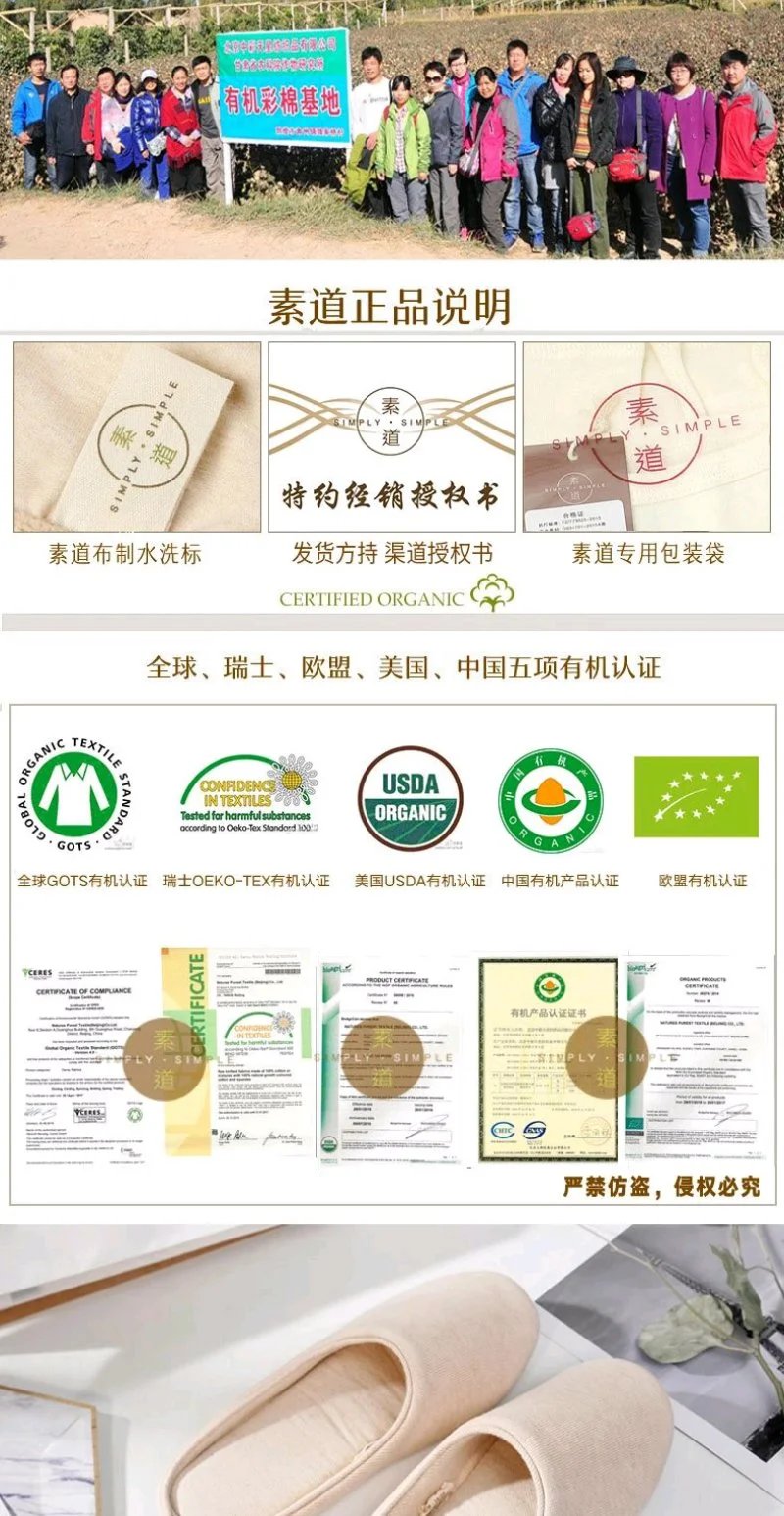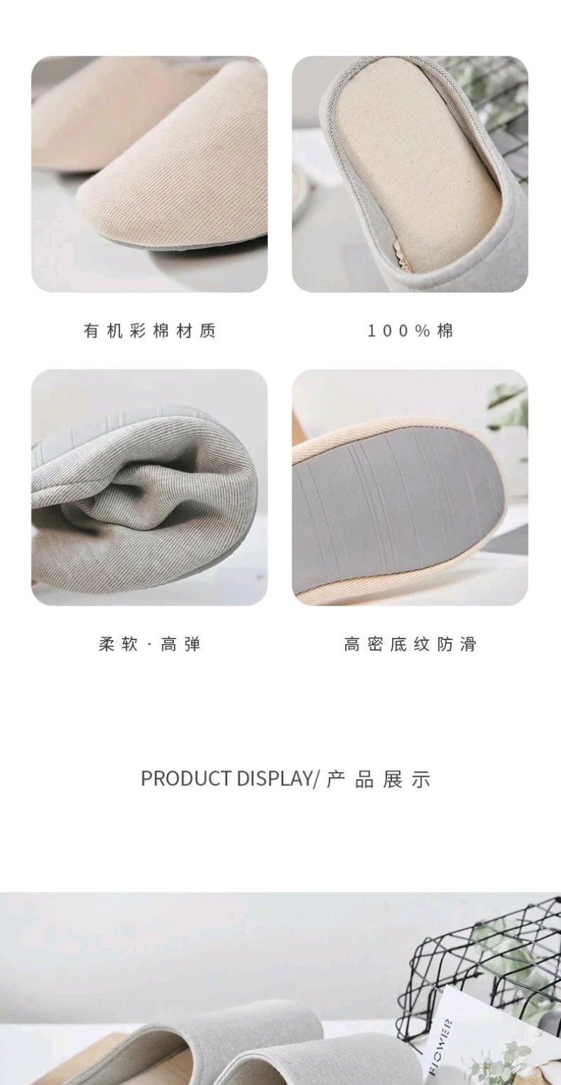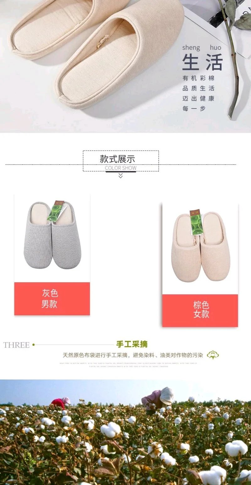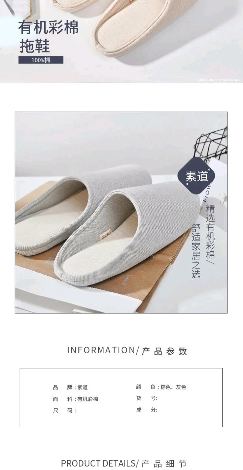 丨素道有机彩棉拖鞋 纯棉 静音 彩棉亲肤不染色环保情侣拖鞋 秋冬季保暖 软底防滑居家拖鞋男女款送礼