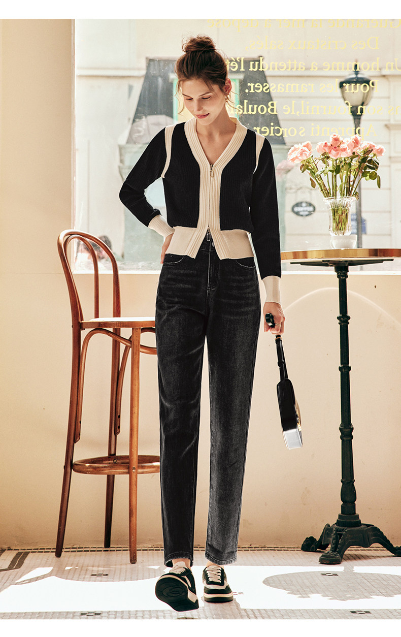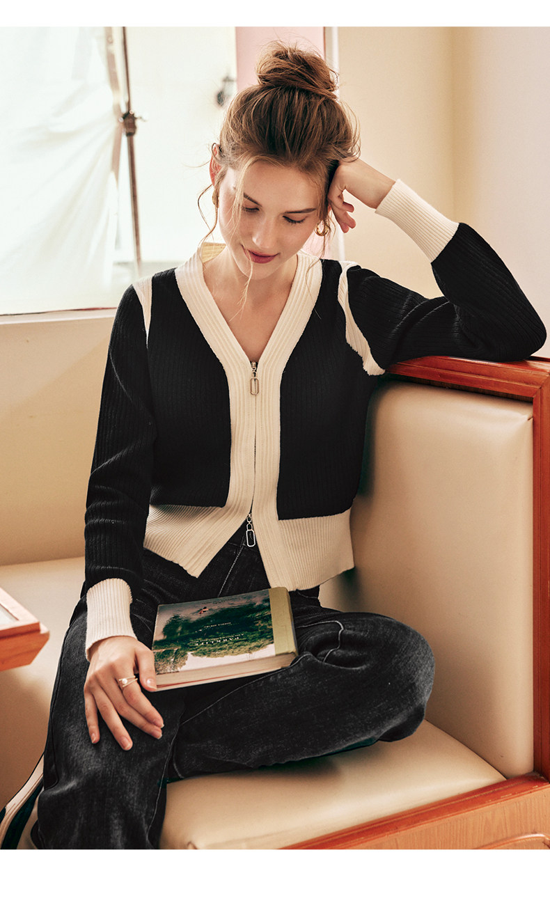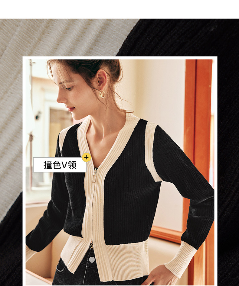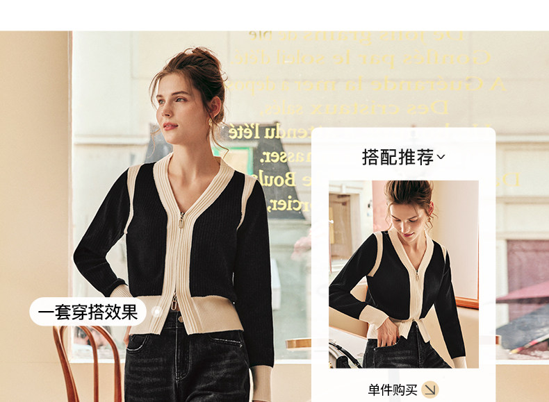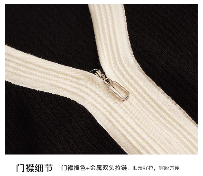 OLrain欧芮儿法式黑色毛衣外套女秋冬2022年新款修身拉链针织开衫