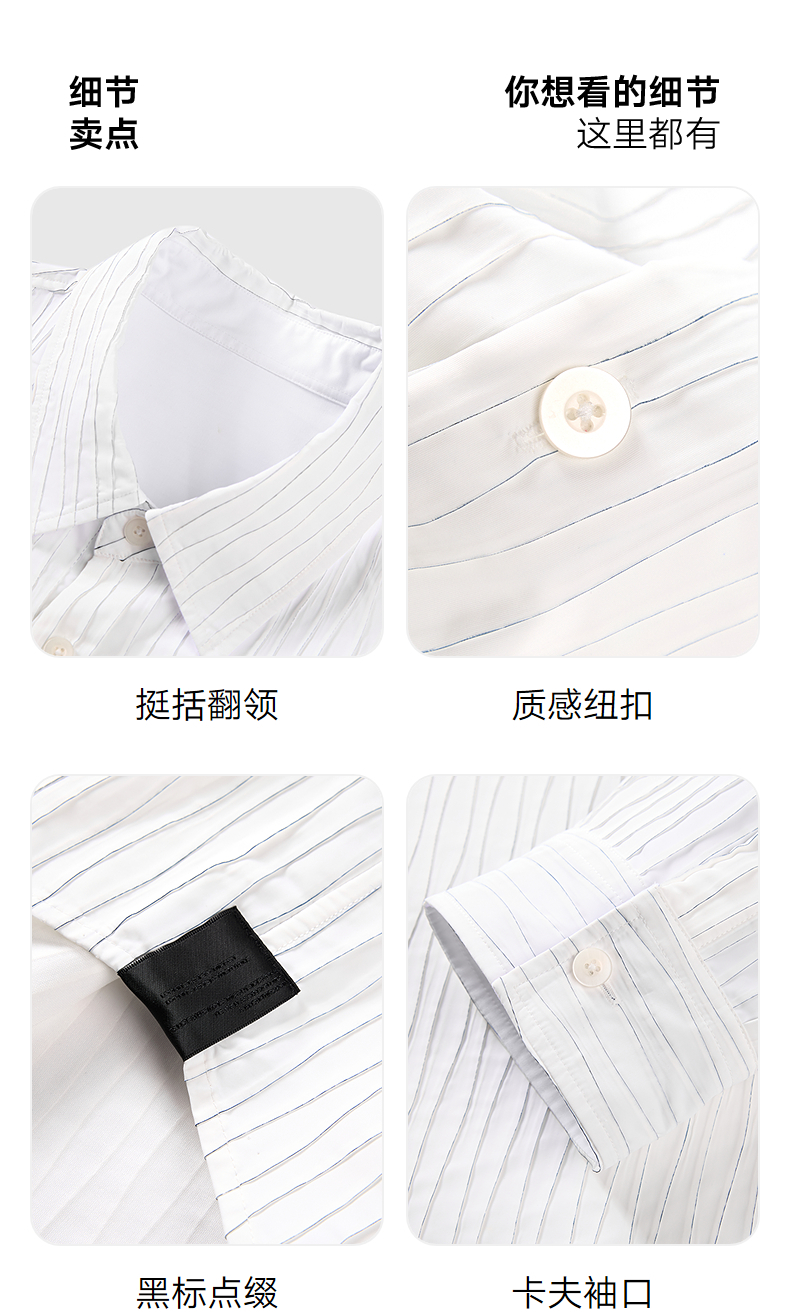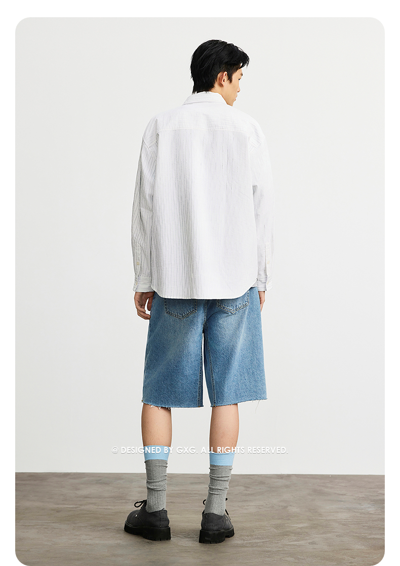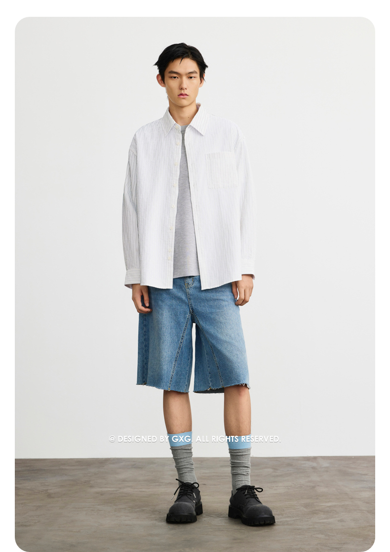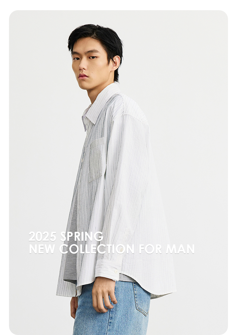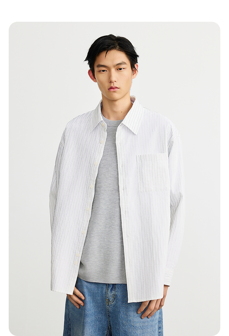 GXG男装 条纹设肌理感宽松简约休闲长袖衬衫 25春热卖G25X031008
