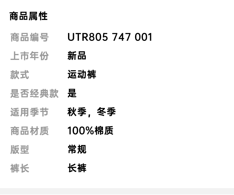AMI 男女同款棉质运动裤 黑色 UTR805 747 001
