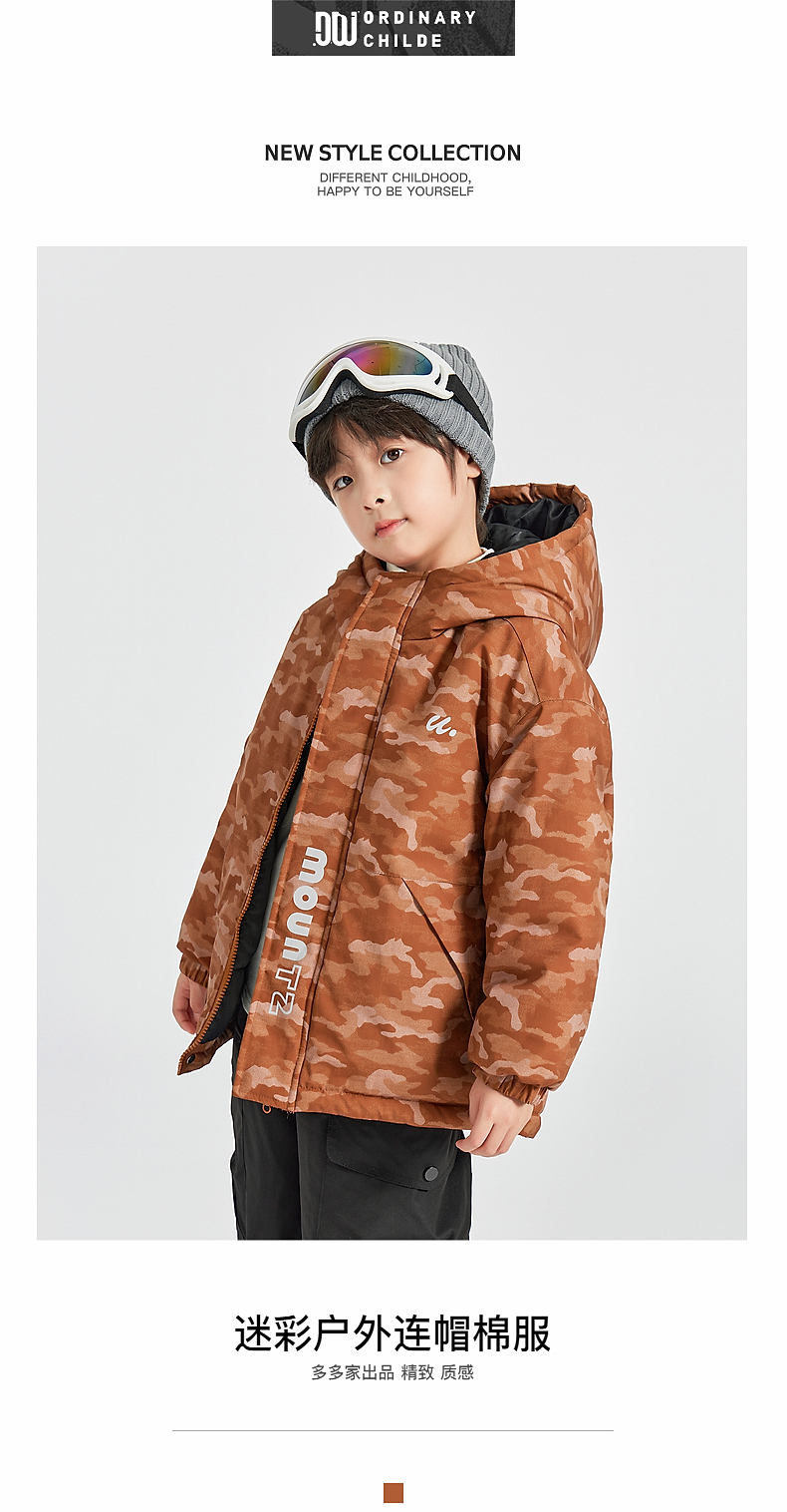 【件件底价,童装双倍积分】多多家男童棉服外套防水棉衣2024秋冬新款儿童中大童迷彩冬装上衣9809