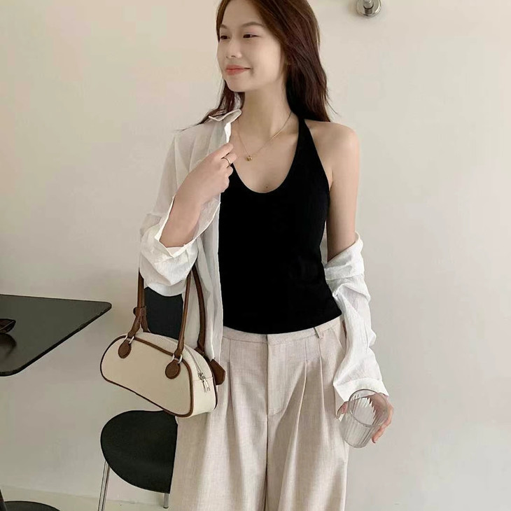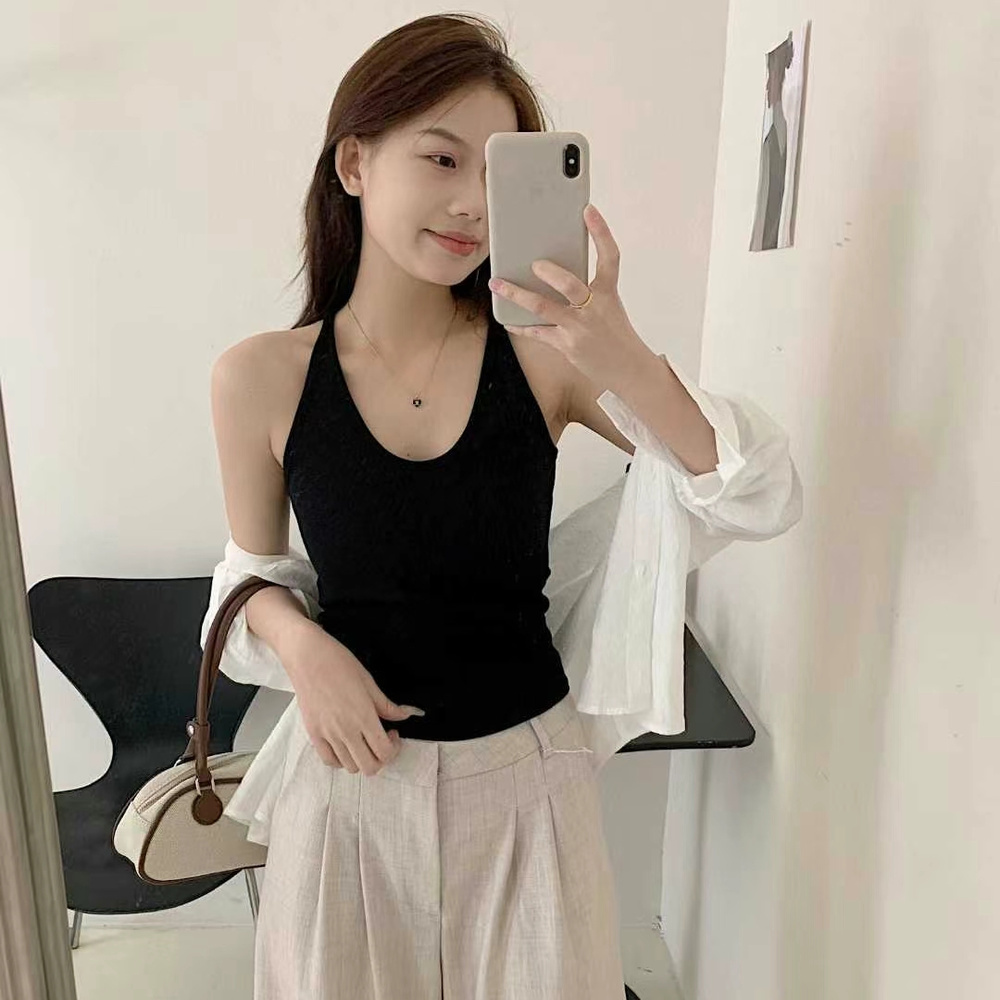 真的很喜欢这个挂脖式吊带背心!