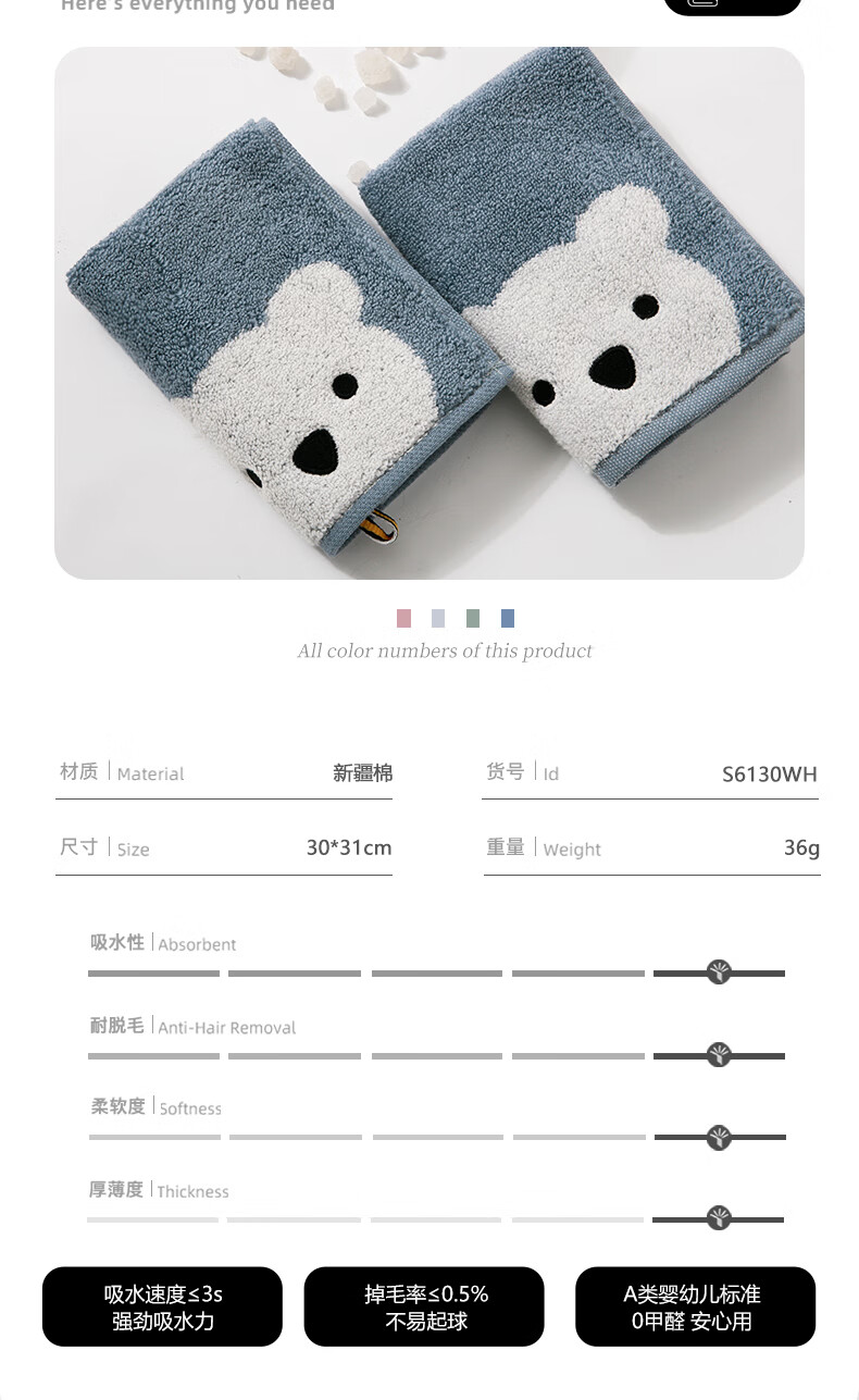 【ZY25】金号A类纯棉方巾 S6130WH 31*30cm 随机发货