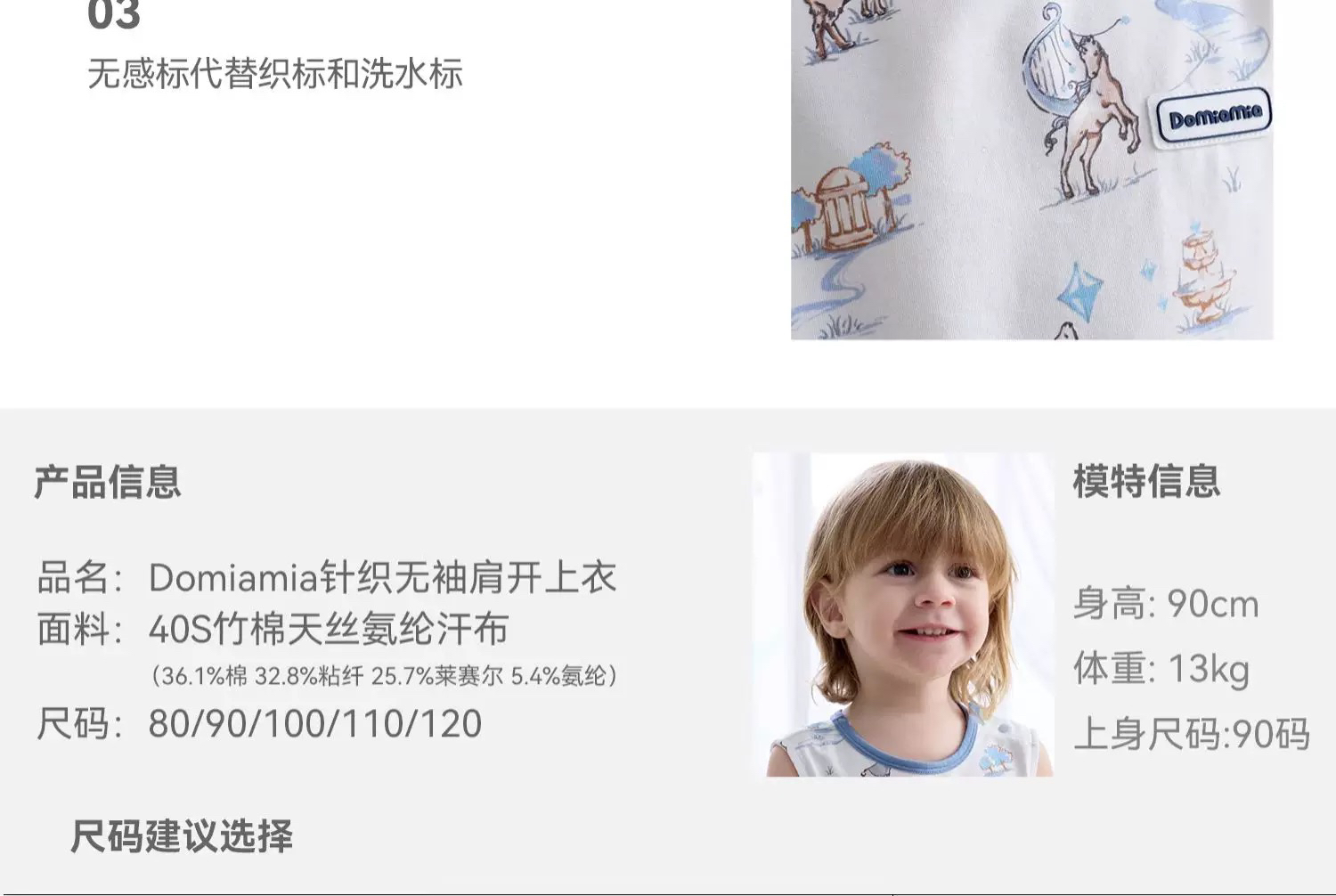 Domiamia 男宝宝针织无袖上衣 男童背心透气薄款家居服