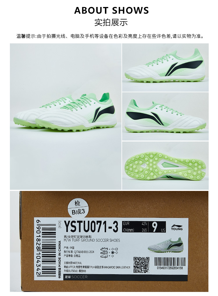 SFS 李宁合作款长歌PRO次顶TF碎钉袋鼠皮足球鞋YSTU071-3