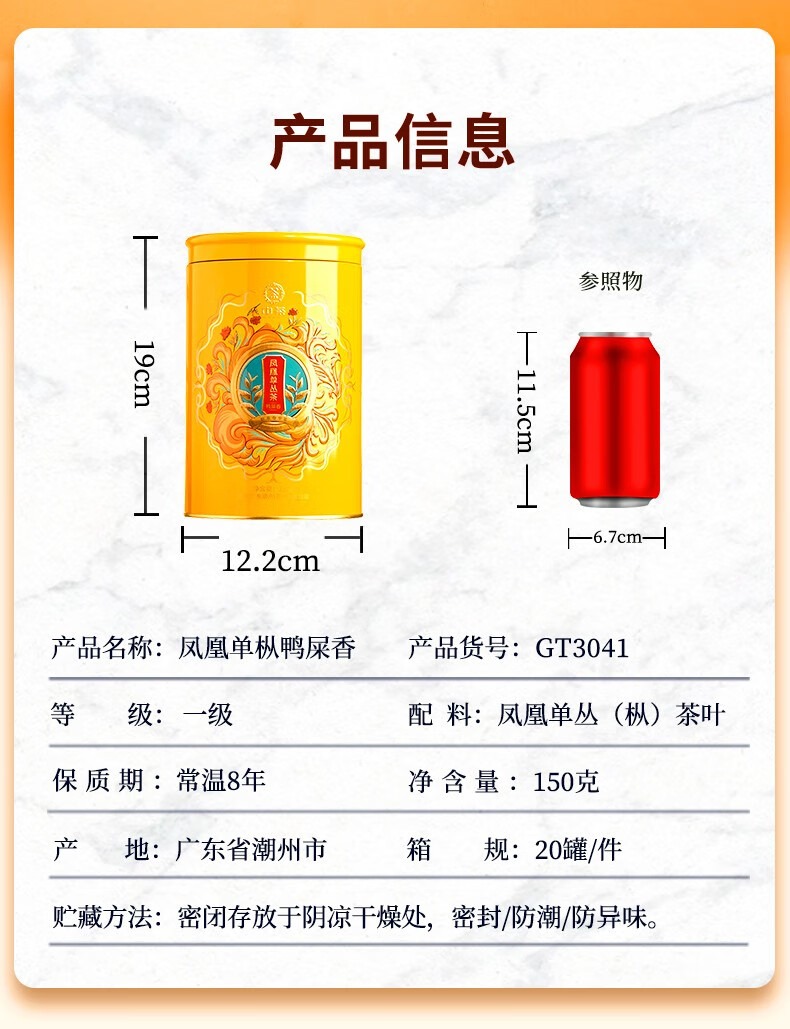 中茶 GT3041 凤凰单丛茶-鸭屎香150g乌龙茶岩茶