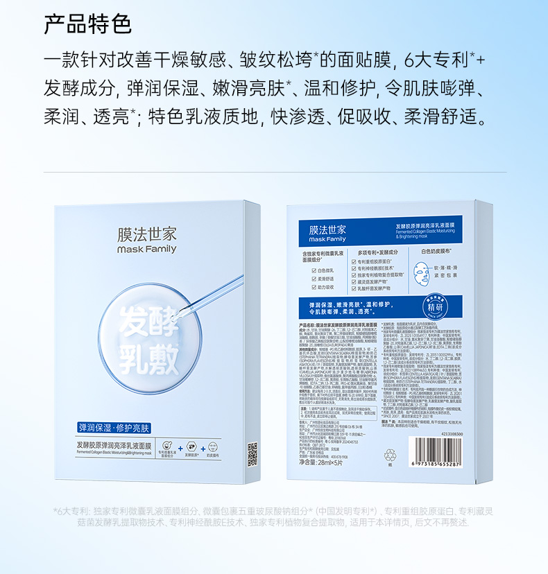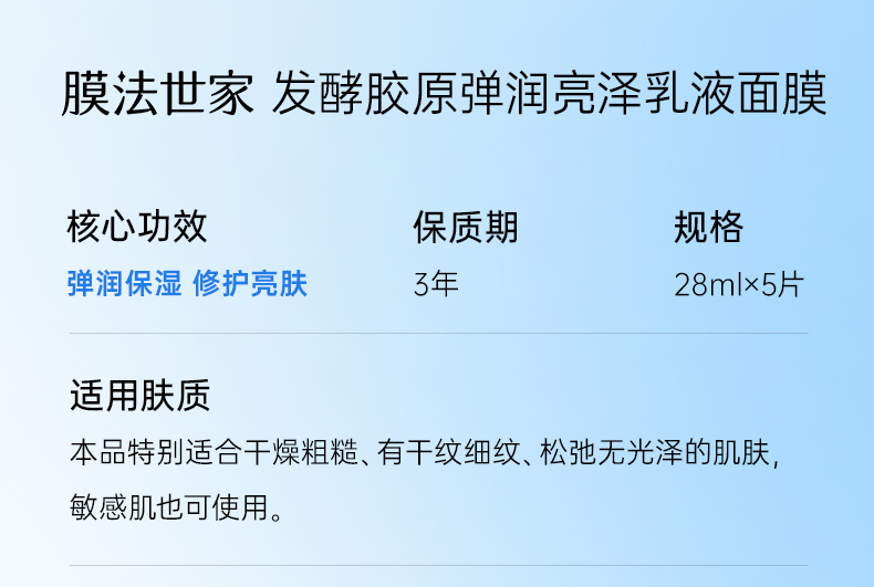 【¥𝟓𝟗任选𝟑件】膜法世家修护舒缓提亮紧致胶原乳敷膜面膜5片装