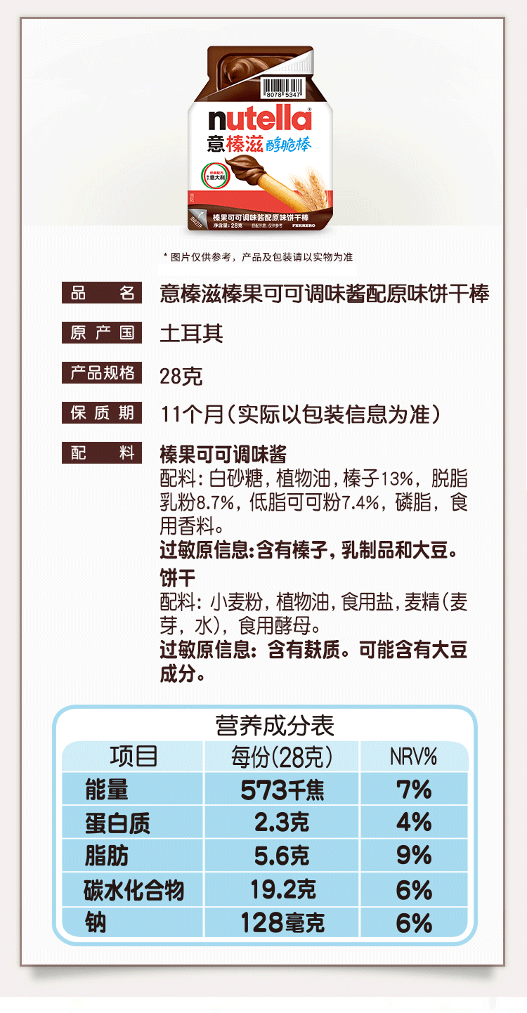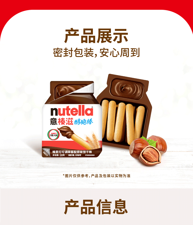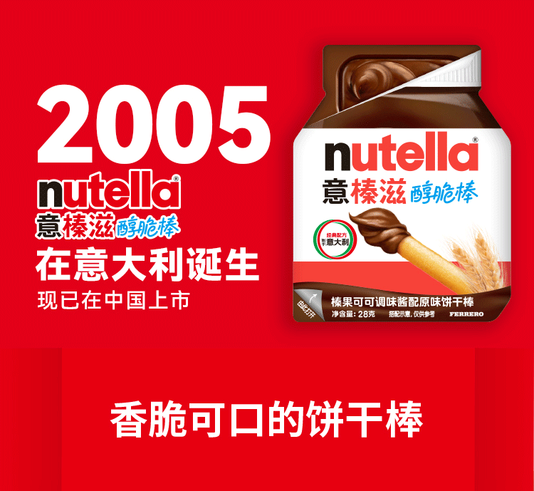 意榛滋醇脆棒榛果可可调味酱配原味饼干棒28g