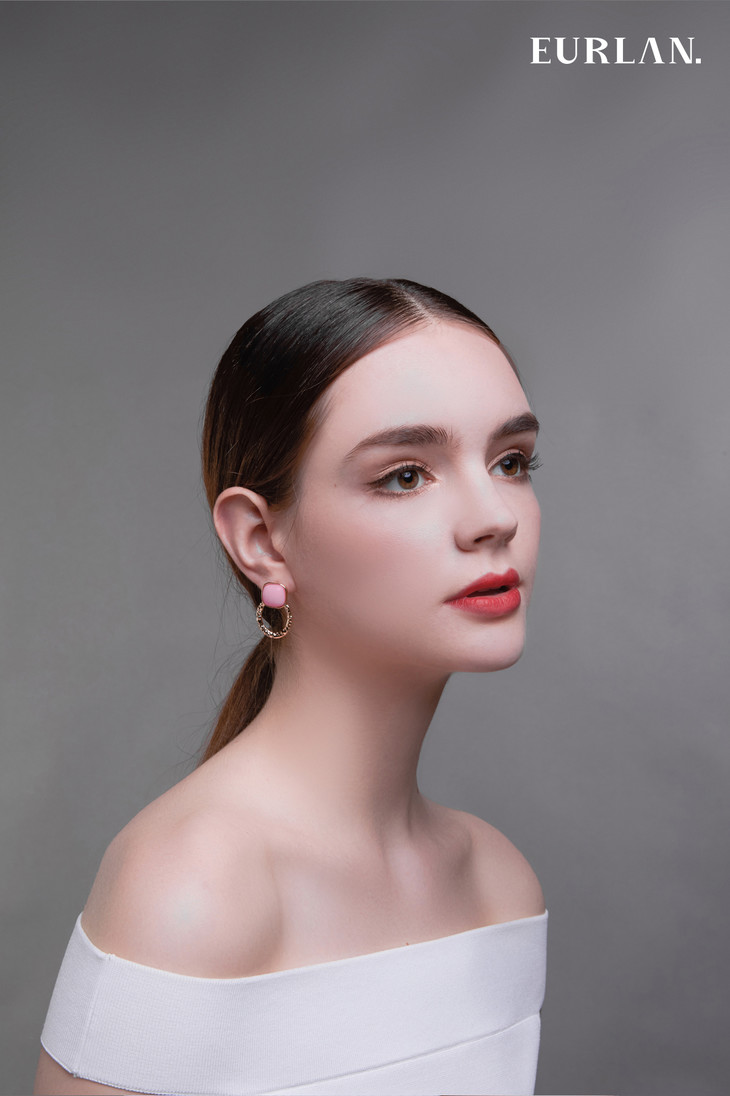 EURLAN. C色彩系列 耳环 椭圆粉